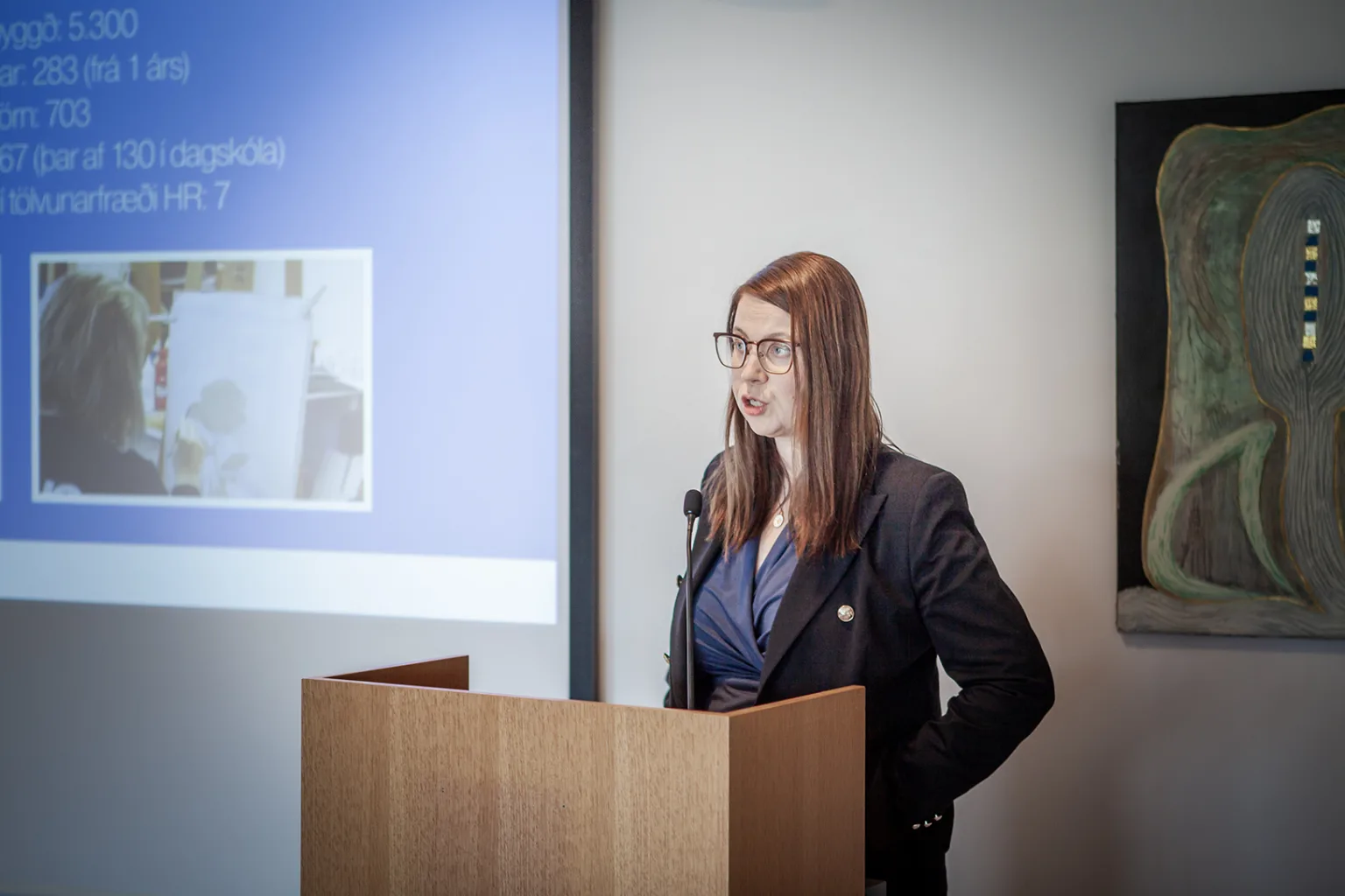 Í máli sínu fór hún yfir kraftinn í atvinnulífinu í Fjarðabyggð og þau miklu útflutningsverðmæti sem þar verða til í fjölmörgum atvinnugreinum. Hún ræddi mikilvægi uppbyggingu innviða í sveitarfélaginu til að nýta tækifærin og styðja við vöxt og þróun samfélagsins s.s. á sviði samgöngumála, húsnæðismála sem og mennta- og heilbrigðismála. Þá fjallaði hún um stöðuna í orkuskiptum og sóknarfærin því tengt í sveitarfélaginu.