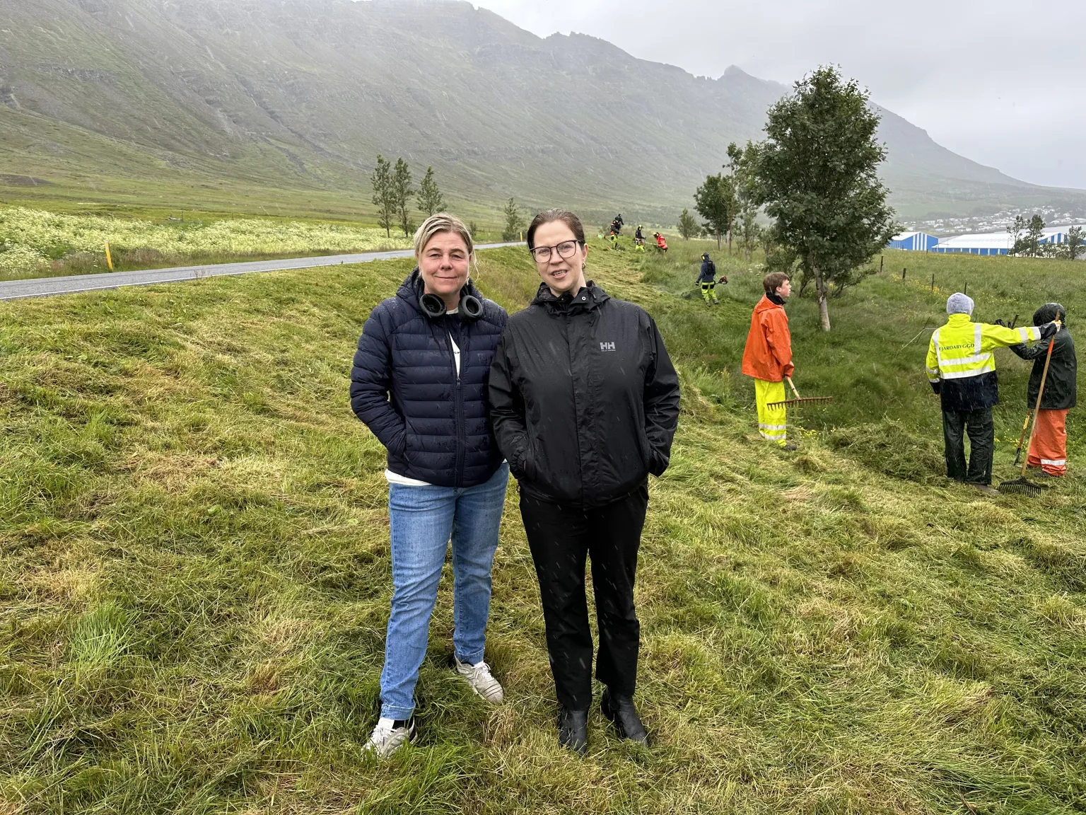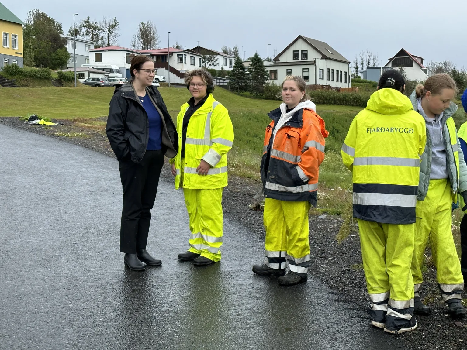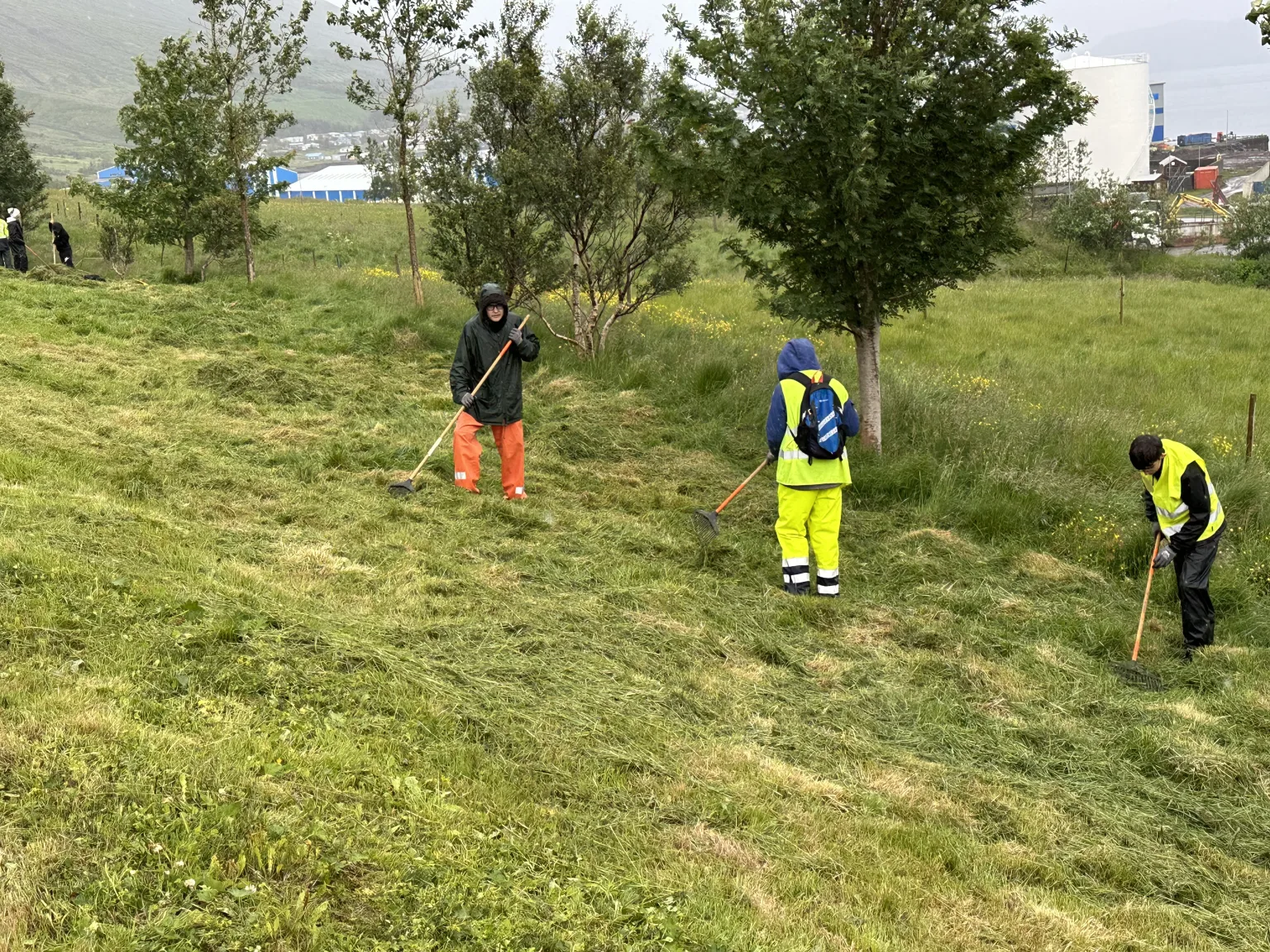 Krakkarnir létu vel að starfinu þó veðrið hefði mátt vera aðeins skárra, en úrhellisrigning var á meðan heimsókninni stóð.