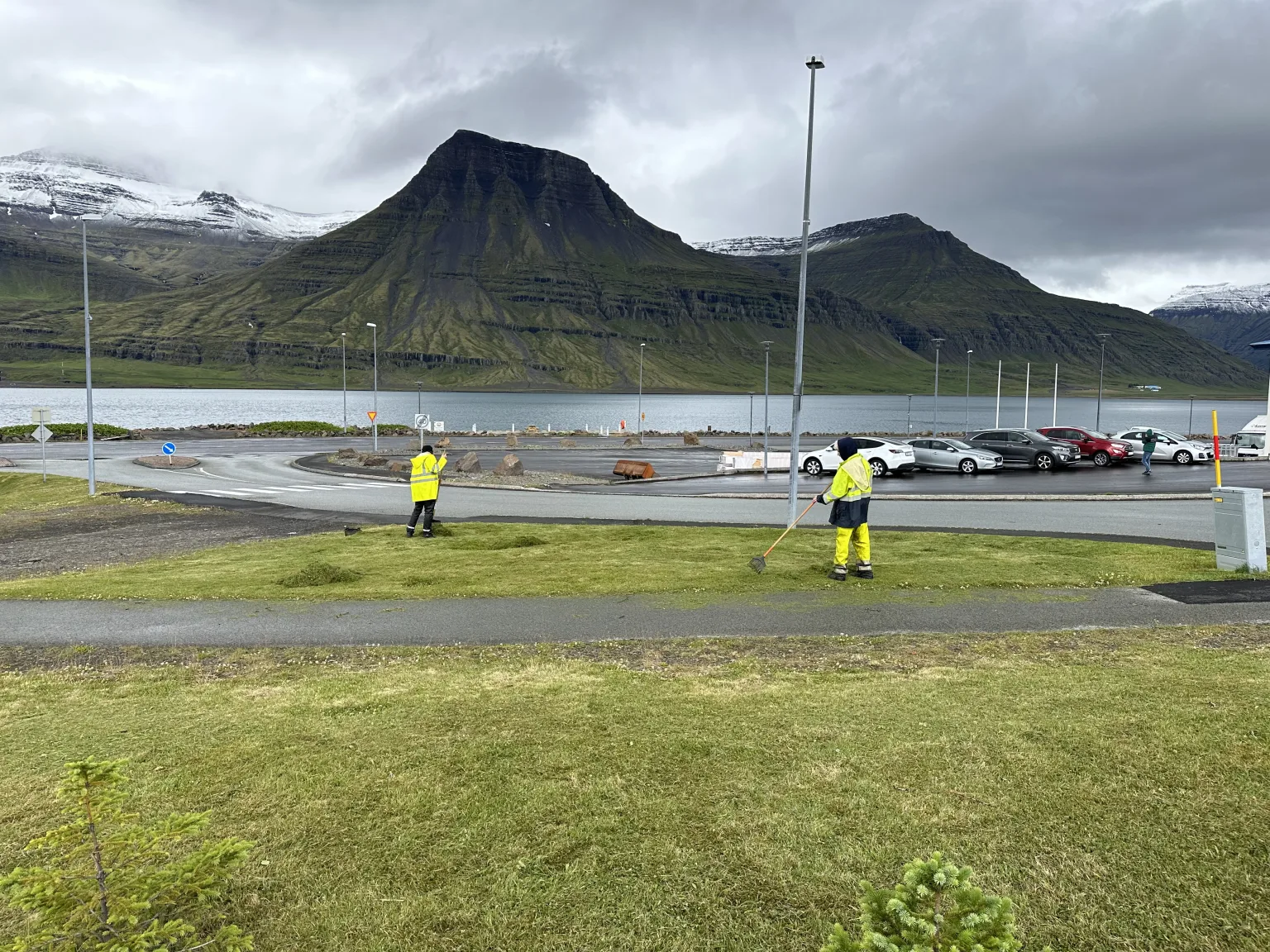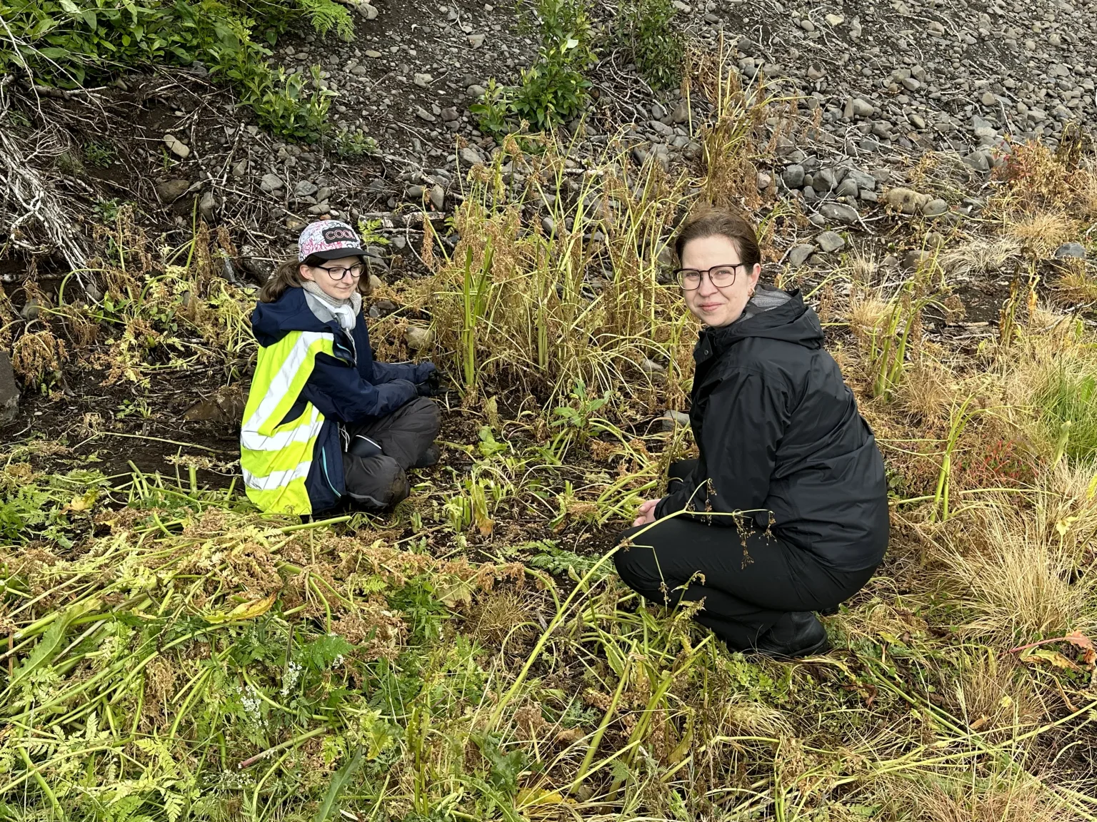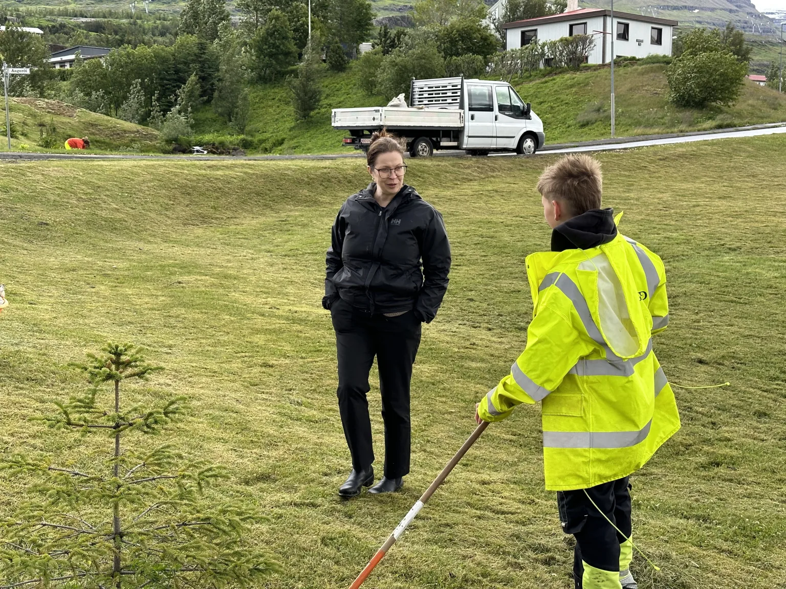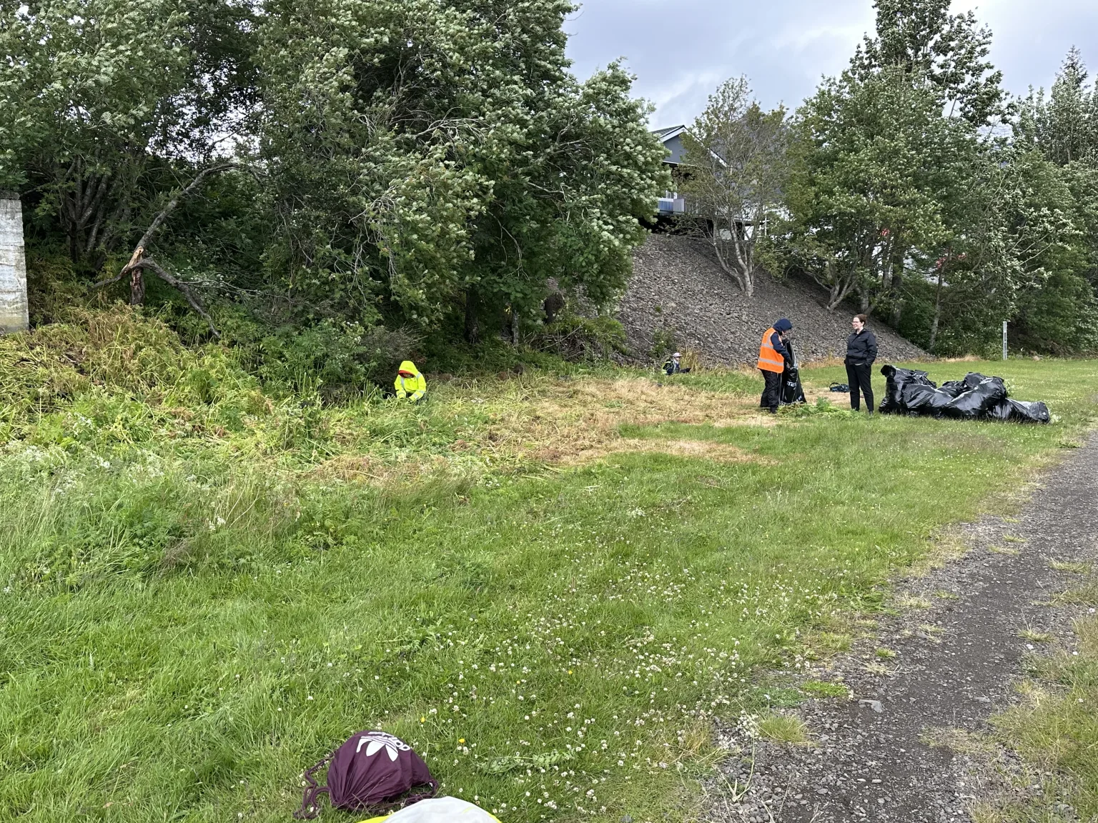 Krakkarnir létu vel að starfinu þó veðrið hefði mátt vera aðeins skárra, en úrhellisrigning var á meðan heimsókninni stóð.