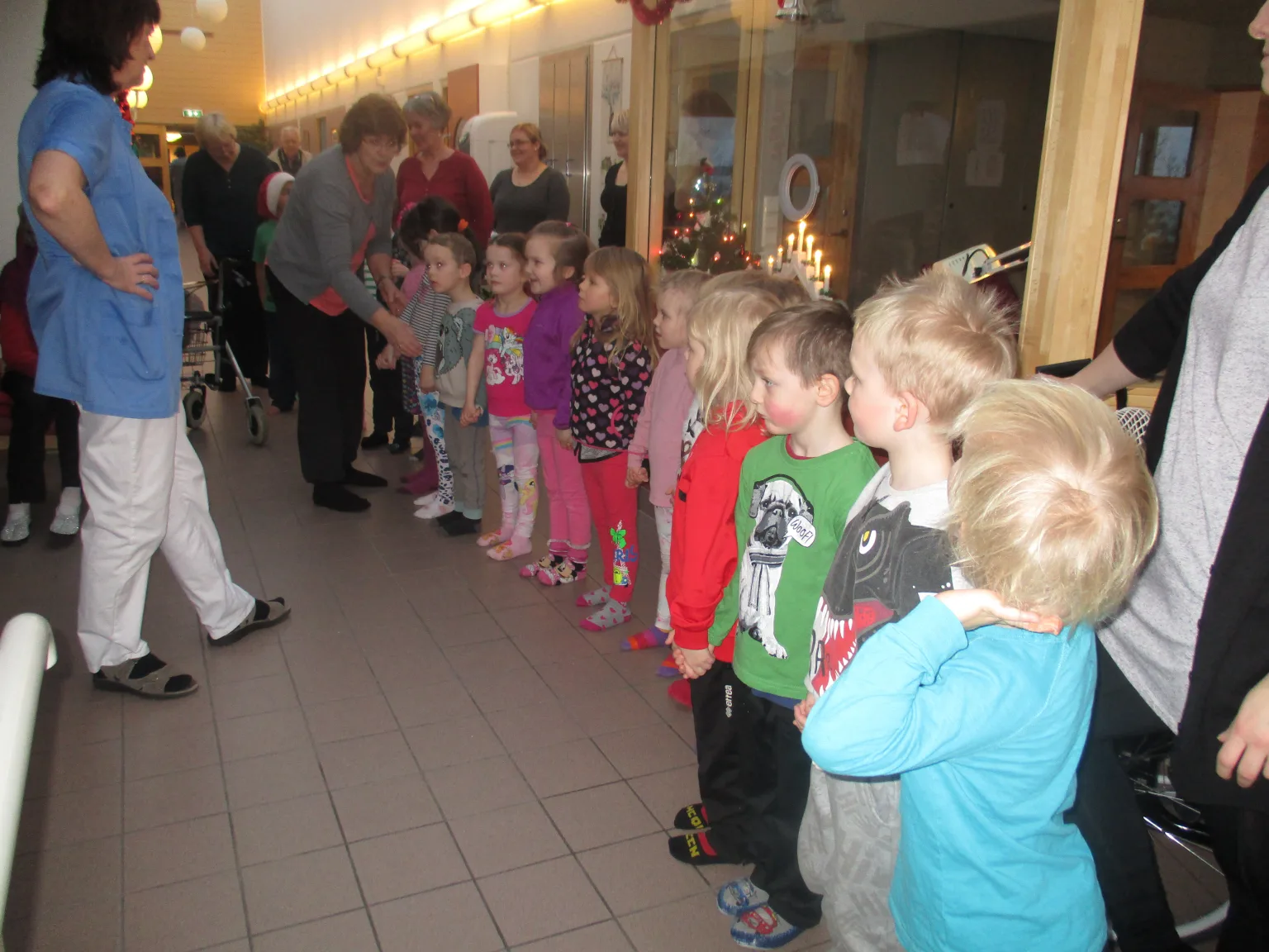 Börnin fara einnig í félagsmiðstöð eldri borgara – Glaðheima, syngja jólalög og njóta veitinga auk þess sem farið er inn á hjúkrunar- og dvalarheimilið Uppsali og sungið fyrir heimilisfólkið.
