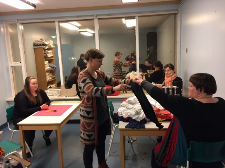 Saumahittingar eru á þriðjudagskvöldum í húsnæði gamla leikskólans Sólvalla og eru allir velkomnir að taka þátt. Það er gott að koma með saumavél en það er ekki nauðsynlegt því það þarf líka að sníða og klippa. Verkefnastjóri umhverfismála leit við sl. þriðjudagskvöld og voru þá saumaðir 77 pokar.