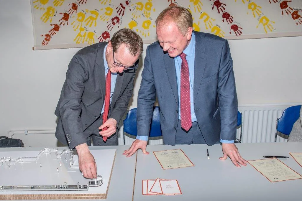 Undirritun vegna Fjarðabyggðar fór fram í Nesskóla nú síðdegis. Samningurinn er undirritaður í tvíriti og er önnur útgáfan, sem er agnarsmá, varðveitt í stóru Íslandslíkani.