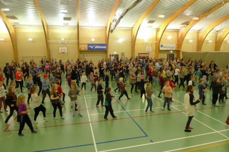Fjöldi var samankominn í íþróttahúsinu í Neskaupstað í hádeginu á föstudag og dansaði fyrir réttlátari heimi. Páll Björgvin Guðmundsson, bæjarstjóri, hélt ávarp þar sem hann kom m.a. inn á mikilvægi þess að við pössum upp á hvert annað. Næst kom Guðrún Smáradóttir upp og leiddi dansinn. Byrjað var á upphitunarsporum en síðan kom hvert lagið á fætur öðru með fjölbreyttum sporum. Þátttakendur voru á öllum aldri, frá leikskólaaldri upp í eldri borgara og allir tóku virkan þátt. Dansinn var það æsilegur að svitinn bogaði af fólki.