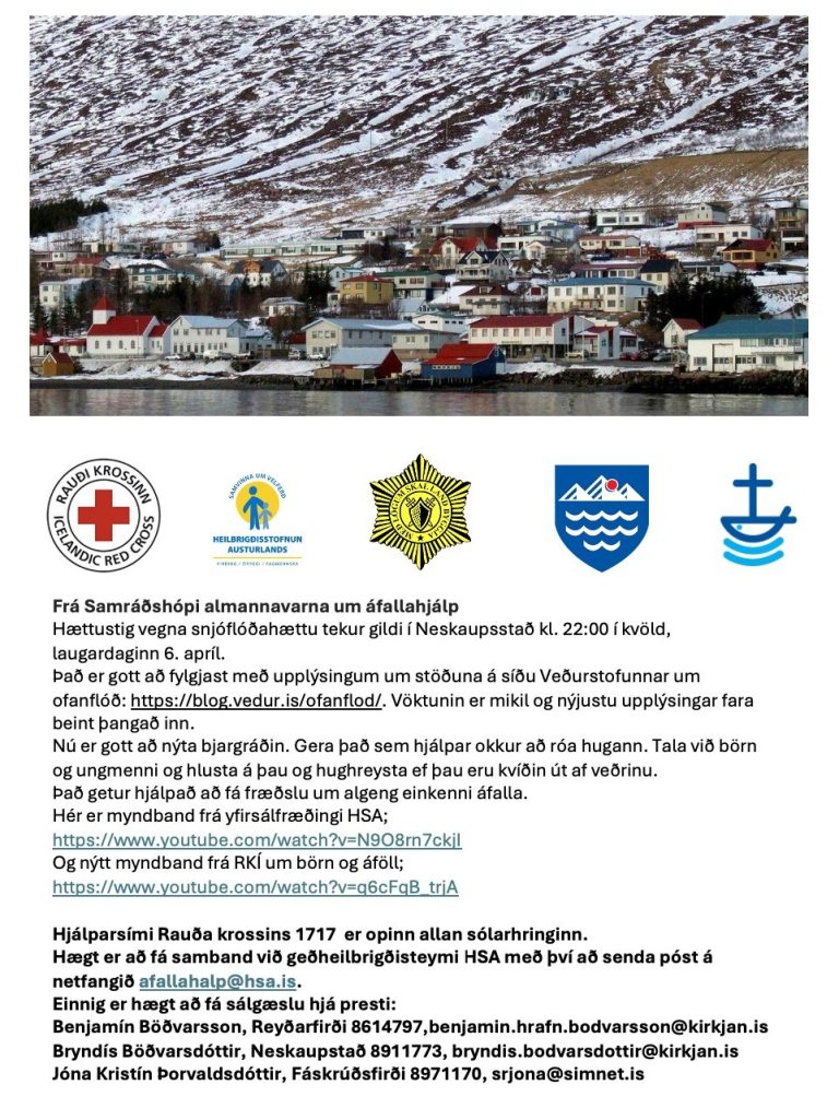 Bryndís Böðvarsdóttir, Neskaupsstað 891 1773, bryndis.bodvarsdottir@kirkjan.is