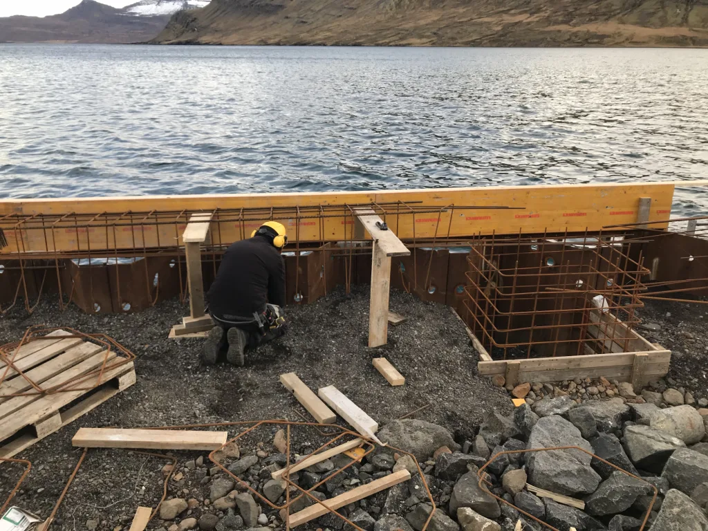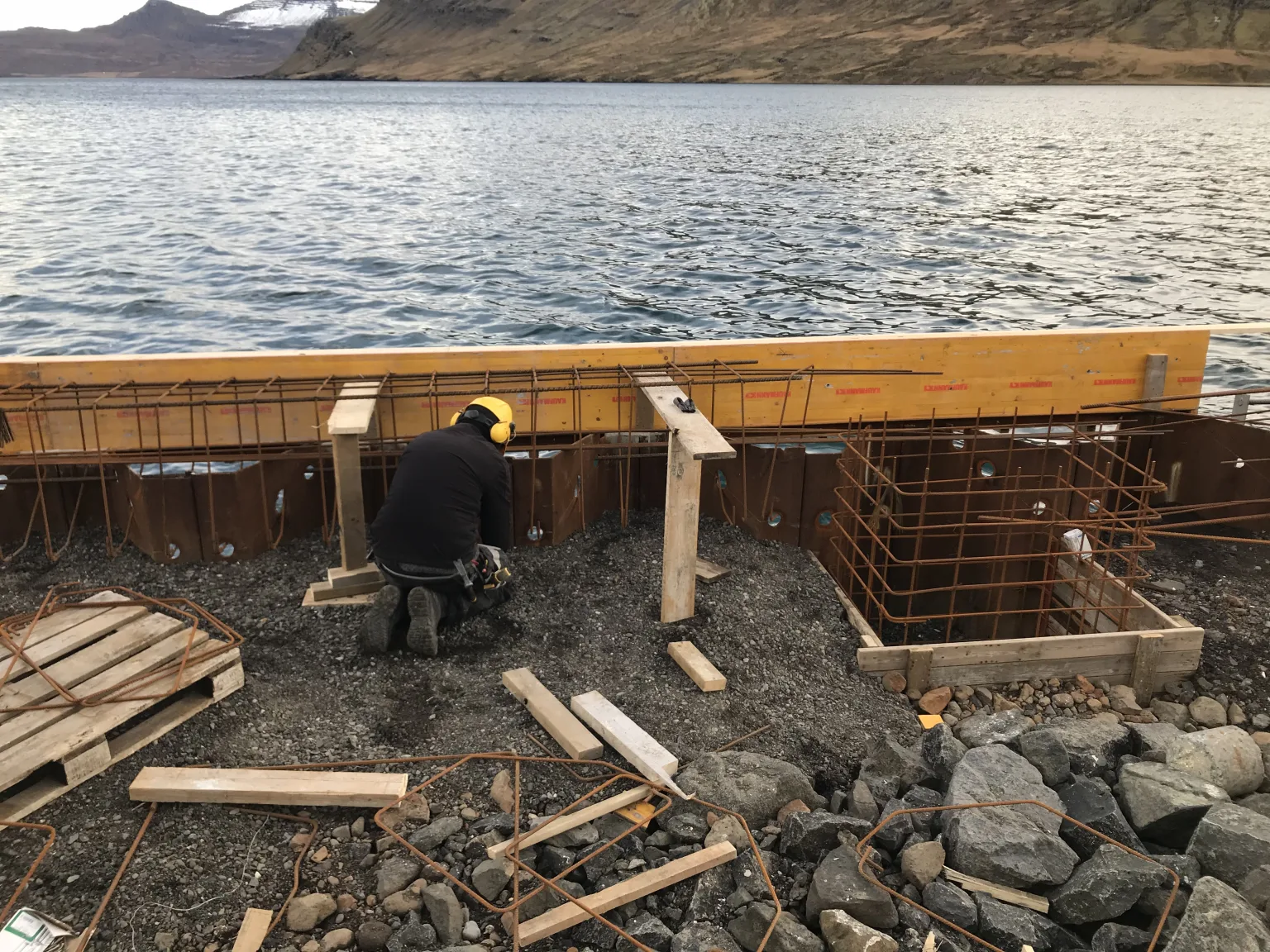 Fjarðabyggðahafnir hafa með landfyllingum búið til athafnasvæði í Norðfjarðarhöfn og nú er verið að vinna að nýjum hafnarkanti og þekju þar. Nú er unnið að þvi að steypa kantbita ofan á stálþil og þekju þar fyrir innan.