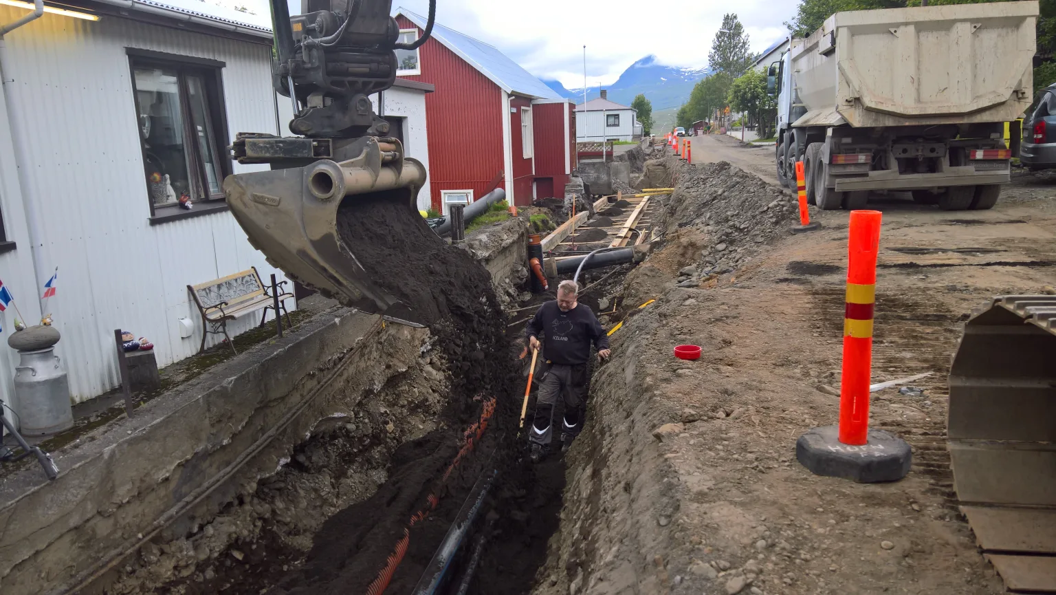 Það efni sem tekið er úr götunni verður nýtt í umhverfisverkefni. Því er keyrt í brekkuna sem er rétt fyrir neðan hjúkrunarheimilið Uppsali, þar sem það verður sléttað niður og síðan verða þökur lagðar yfir. Ásýnd brekkunnar verður því mun betri en áður. Framkvæmdaaðilar vilja þakka íbúum þolinmæði síðustu vikna, en áfram gæti orðið vart við vatnsleysi annað kastið vegna framkvæmdanna.
