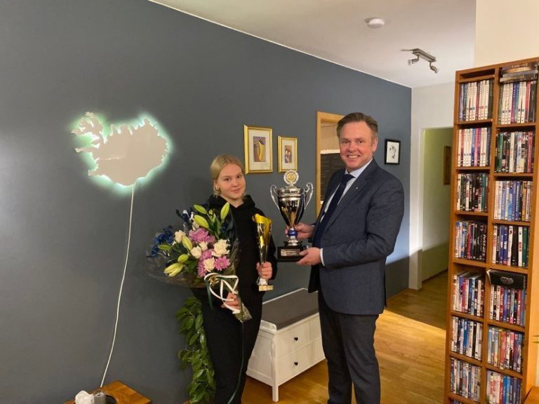 Sú hefð hefur skapast að íþróttamaður Fjarðabyggðar sé kynntur við hátíðlega athöfn milli jóla og nýjárs, og þeir sem tilnefndir voru til verðlaunanna hafa þá einnig fengið afhentar viðurkenningar. Vegna sóttvarna var ekki hægt að gera það með þeim hætti að þessu sinni. Jón Björn Hákonarson, bæjarstjóri Fjarðabyggðar, afhenti því Freyju verðlauninn á dögunum á heimili hennar í Neskaupstað.