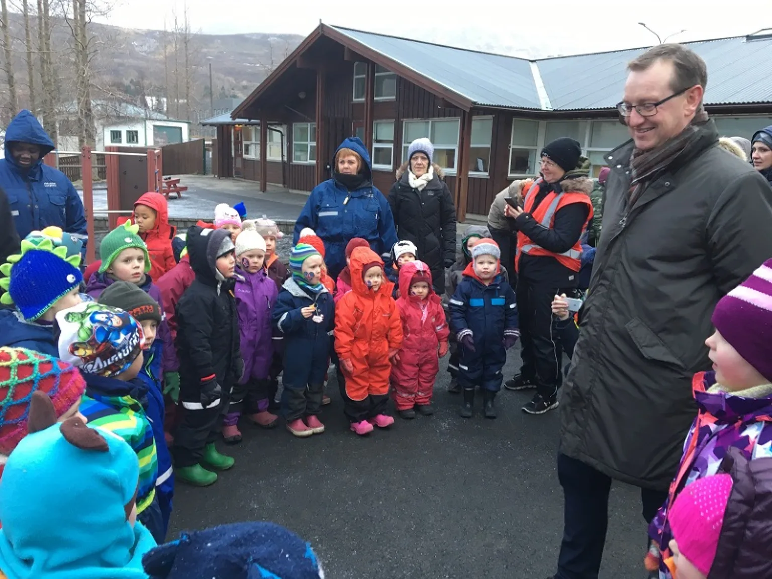Boðið upp á ávexti og kleinur og gæddu bæði nemendur og gestir sér á góðgætinu. Fjölmargir komu í heimsókn á Lyngholt til að samgleðjast, þar á meðal Þóroddur Helgason, fræðslustjóri.