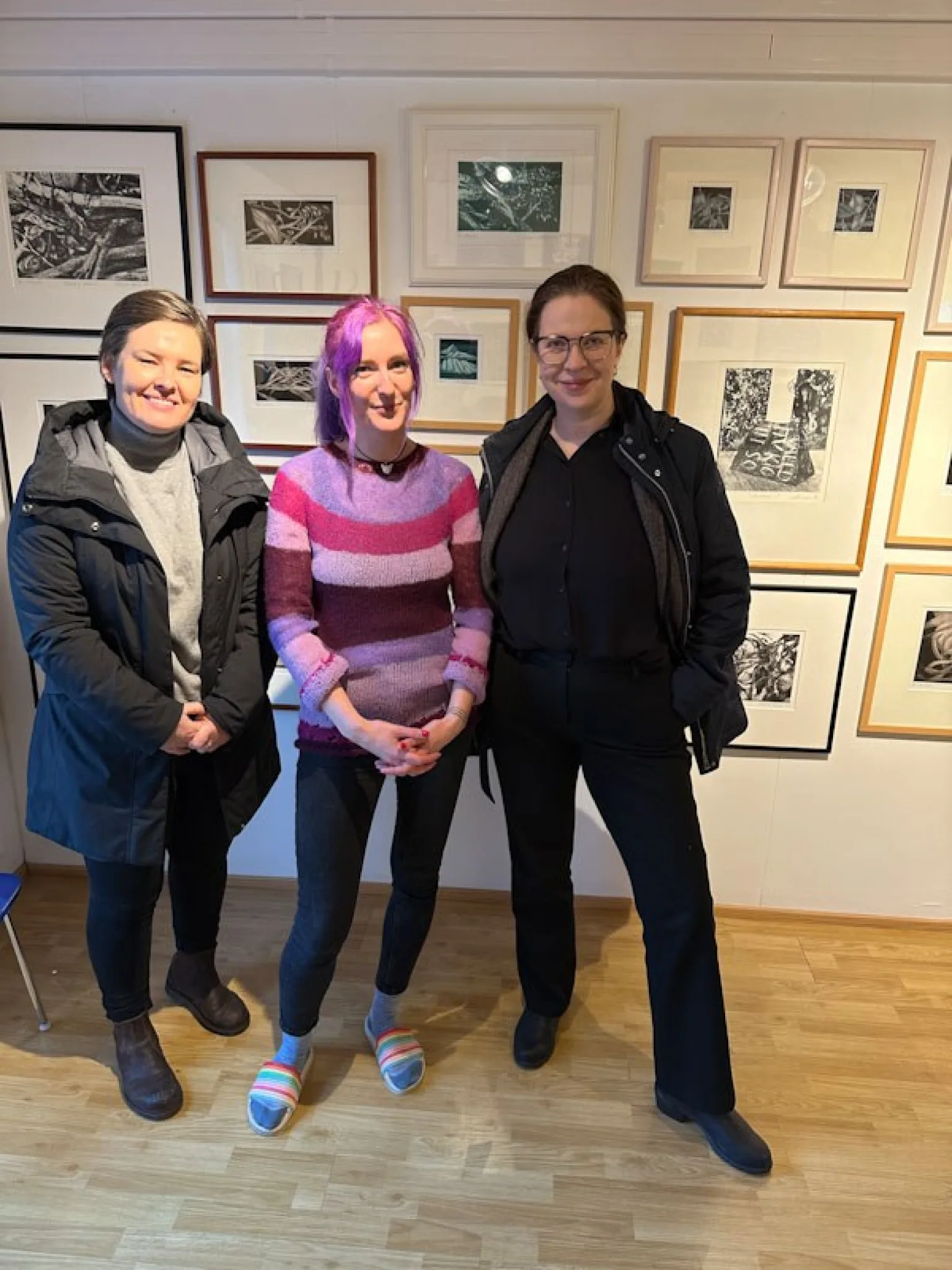 Eftir heimsóknina í Breiðdals- og Stöðvarfjarðaskóla var haldið yfir í Gallerí Snærós, en þar tók á móti okkur Rósa Valtingojer. Þess má geta að galleríið verður 35 ára, 6. desember næstkomandi og er eitt elsta gallerí á landsbyggðinni. Að Gallerí Snærós standa listakonurnar og mæðgurnar Sólrún Friðriksdóttir og Rósa Valtingojer. Galleríið hefur verið starfandi frá árinu 1988, í fyrstu á vegum Sólrúnar og eiginmanns hennar Ríkharðs Valtingojer, listamanns og grafíker en hann lést árið 2019.