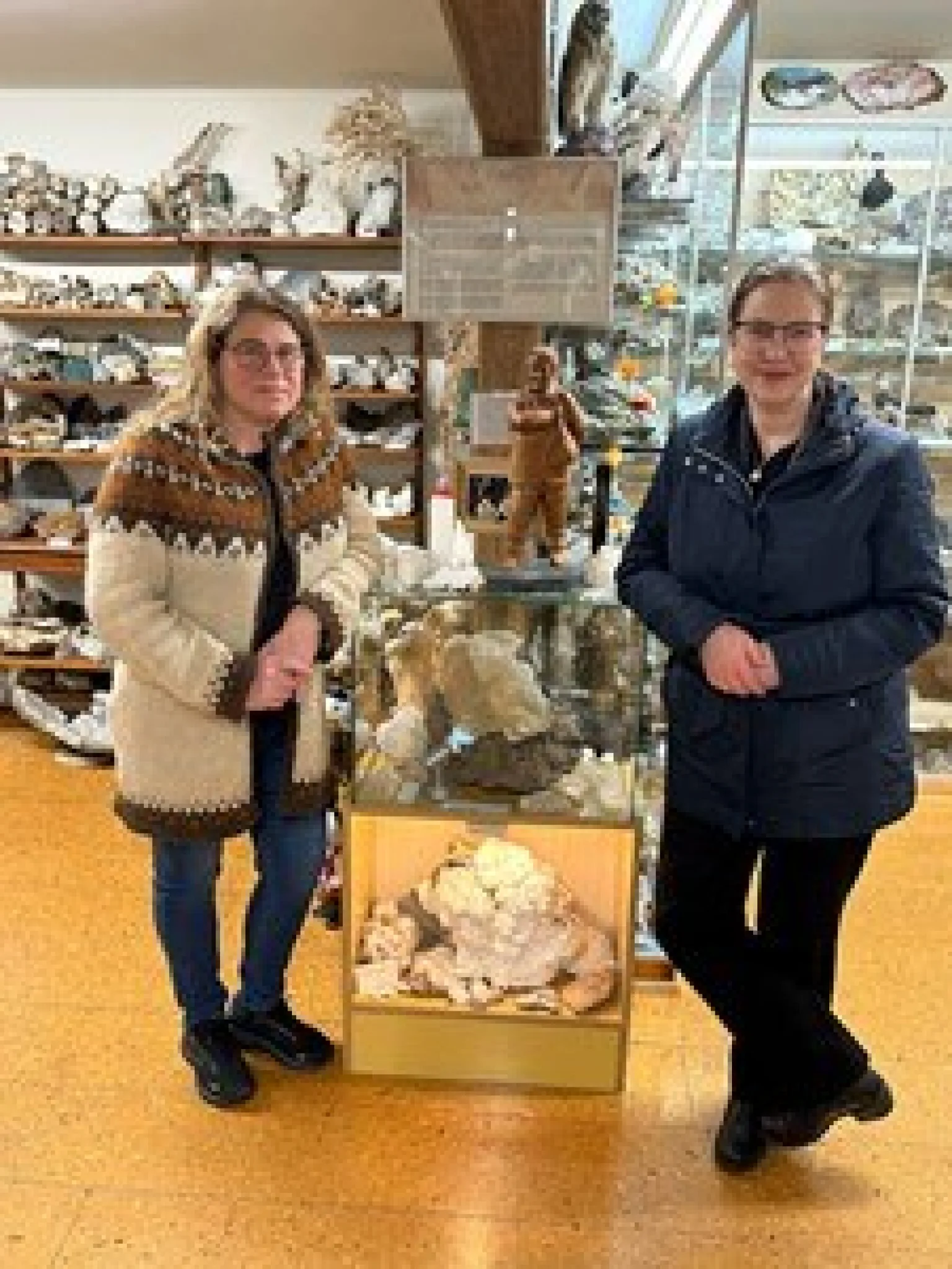 Að lokum var Steinasafn Petru heimsótt. Steinasafn Petru er stórt og glæsilegt steinasafn í einkaeigu. Unnur Sveinsdóttir og Petra Sveinsdóttir tóku þar á móti okkur, en þær systur eru afkomendur Petru Sveinsdóttur, og nú hefur þriðja kynslóðin tekið við rekstrinum, en hann er í höndum Unnar. Stofnandi þess, Petra Sveinsdóttir, safnaði steinum í fjöllunum við Stöðvarfjörð frá barnæsku og í áranna rás bættist mikið við safnið. Nú fyllir safnið og minjagripasalan húsið hennar Petru og garðinn, sem orðinn er hluti af safninu. Steinasafn Petru er stærsta steinasafn í einkaeigu í Evrópu og jafnvel víðar. Safnið er einn vinsælasti áfangastaður ferðamanna á Austurlandi, en vel yfir 20.000 gestir heimsóttu safnið síðasta sumar. Safnið endurspeglar vel jarðfræðilega sérstöðu Austurlands sem eins elsta hluta landsins. Á næsta ári er svo stór áfangi í sögu safnsins en þá eru 50 ára frá því að Petra opnaði hús sitt fyrir gestum.