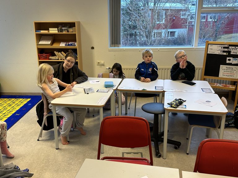 Að loknu spjalli fór Steinþór með okkur um húsnæðið og kynnti starfsemina. Leik- og grunnskólinn á Breiðdalsvík og Stöðvarfirði eru samreknir ásamt tónlistaskólanum. Þar eru 33 nemendur í 1. til 10. bekk og 15 nemendur í leikskólanum. Kennt er til skiptis á Breiðdalsvík og Stöðvarfirði þar sem kennt er á Breiðdalsvík á mánudögum og miðvikudögum og á Stöðvarfirði á þriðjudögum og fimmtudögum. Á föstudögum eru nemendur í sínum heimaskóla. Kíkt var inn í kennslustund hjá eldri og yngri bekkingum, en þau eldri voru á fullu að undirbúa leiksýningu fyrir árshátíðina sem fram fór fimmtudaginn 16. nóvember.