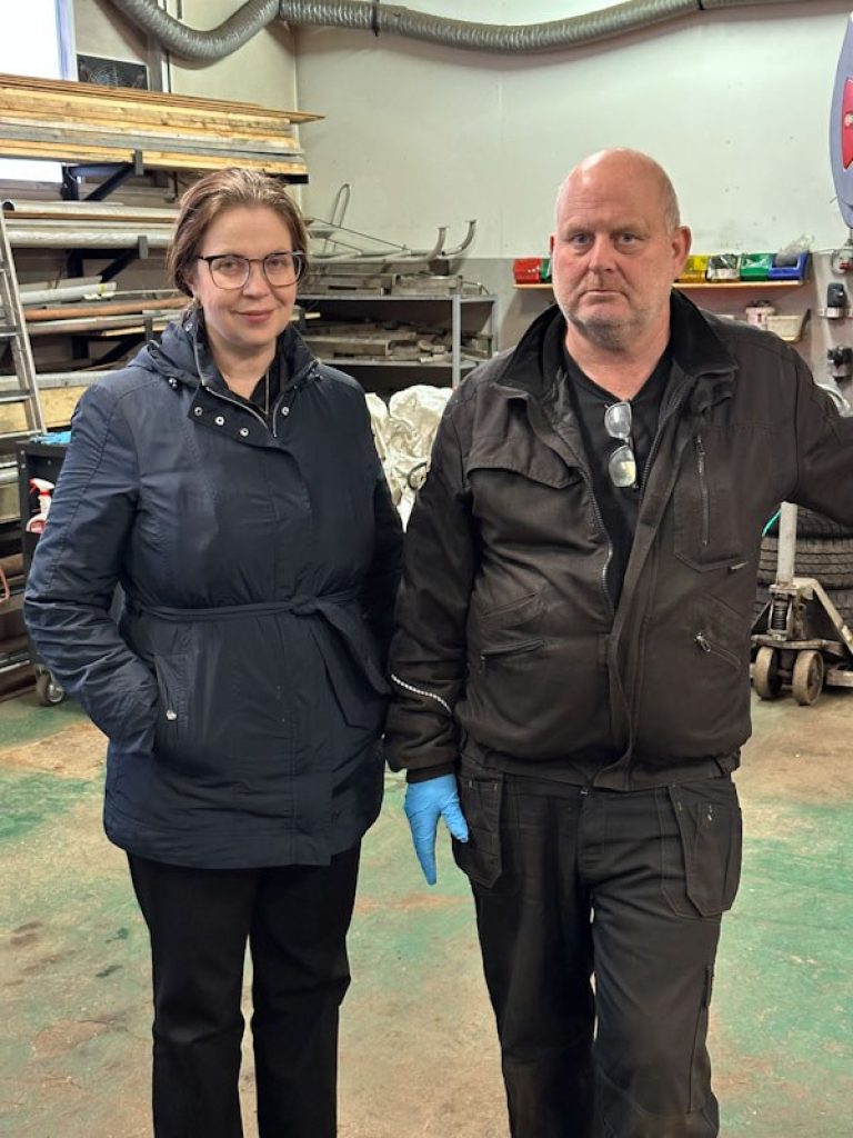Eftir hádegismatinn var haldið yfir í Landatanga, en það er rekið af Margeiri Margeirssyni. Landatangi er verktakafyrirtæki í fjölbreyttri þjónustu en þar er einnig rekið verkstæði þar sem gjarnan er haft á orði að ekkert verkefni sé svo smátt eða stórt að þeir geti ekki tekið það að sér.