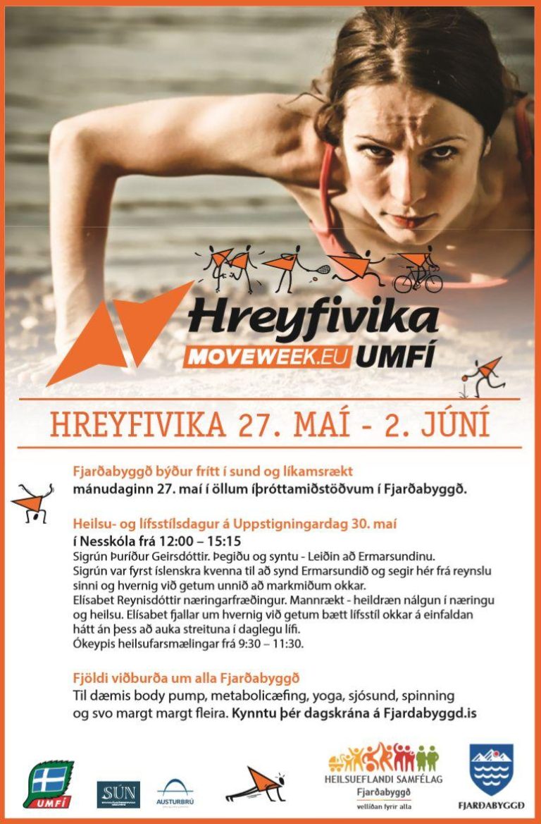 Í tilefni af byrjun Hreyfiviku UMFÍ býður Fjarðabyggð öllum sem vilja frítt í sund og líkamsrækt í Íþróttamiðstöðvum Fjarðabyggðar mánudaginn 27. maí