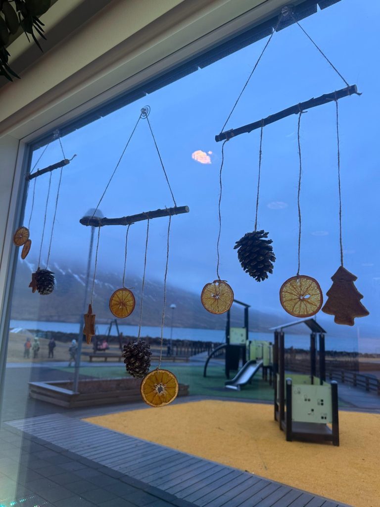 Á leikskólanum Eyrarvöllum er desembermánuður kominn með sitt allra notalegasta andrúmsloft. Börnin hafa verið að föndra jólaskraut og búa til jólagjafir handa foreldrum sínum — hefð sem hefur fylgt öllum deildum ár eftir ár.