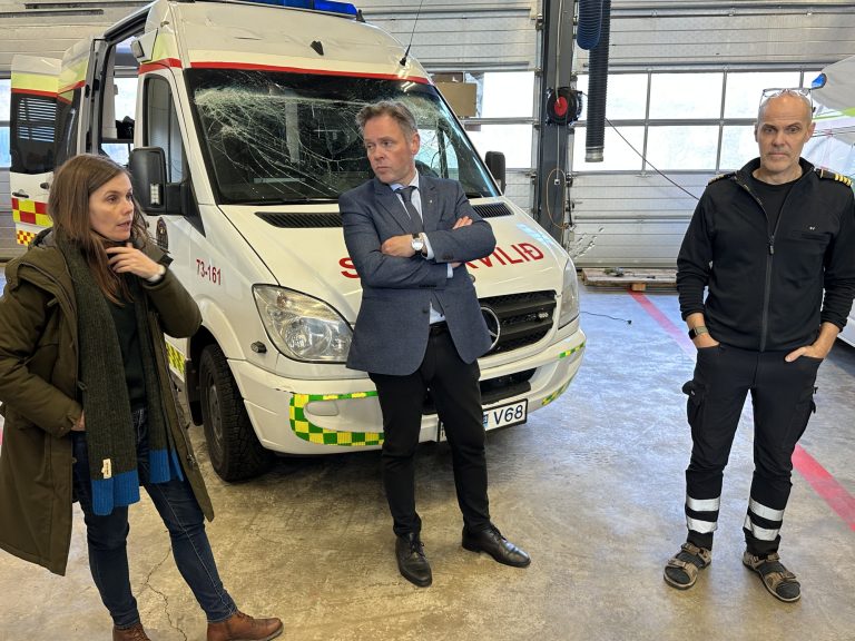 Bæjastjóri fór með forsætisráðherra ásamt bæjarfulltrúum og skoðuðu skemmdir á stríðsárasafninu og á slökkvistöðinni við Mjóeyrahöfn. Á slökkvistöðinni tók á móti þeim Sigurjón Valmundarson slökkviliðstjóri, Sigurfinnur Líndal varaslökkviliðsstjóri ásamt vaktinni sem var á vakt þegar óveðrið gekk yfir. Þar skoðuðu þau skemmdirnar sem urðu á slökkvistöðinni ásamt því að ræða við starfsmennina sem voru á vakt þegar óveðrið gekk yfir.
