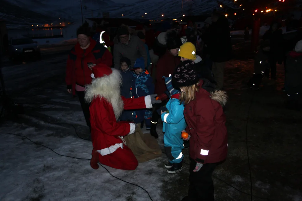 Talsverður fjöldi var saman kominn á öllum stöðum í blíðskaparveðri. Jólasveinarnir létu sjá sig og færðu börnunum ávexti.