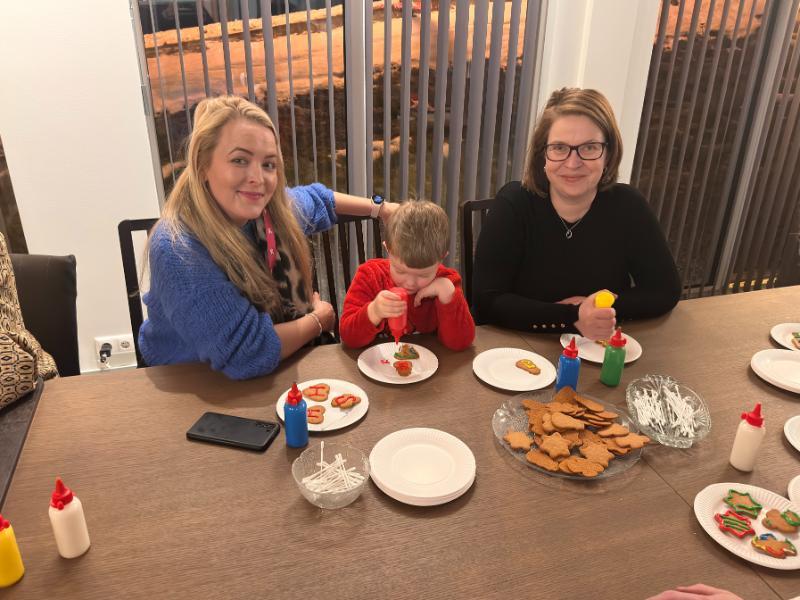 Í húsinu skapaðist afslöppuð og notaleg stemning; gestir skreyttu piparkökur, boðið var upp á heitt kakó og áttu ánægjulega stund saman í hlýlegu andrúmslofti.