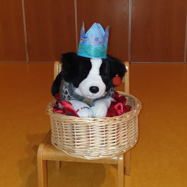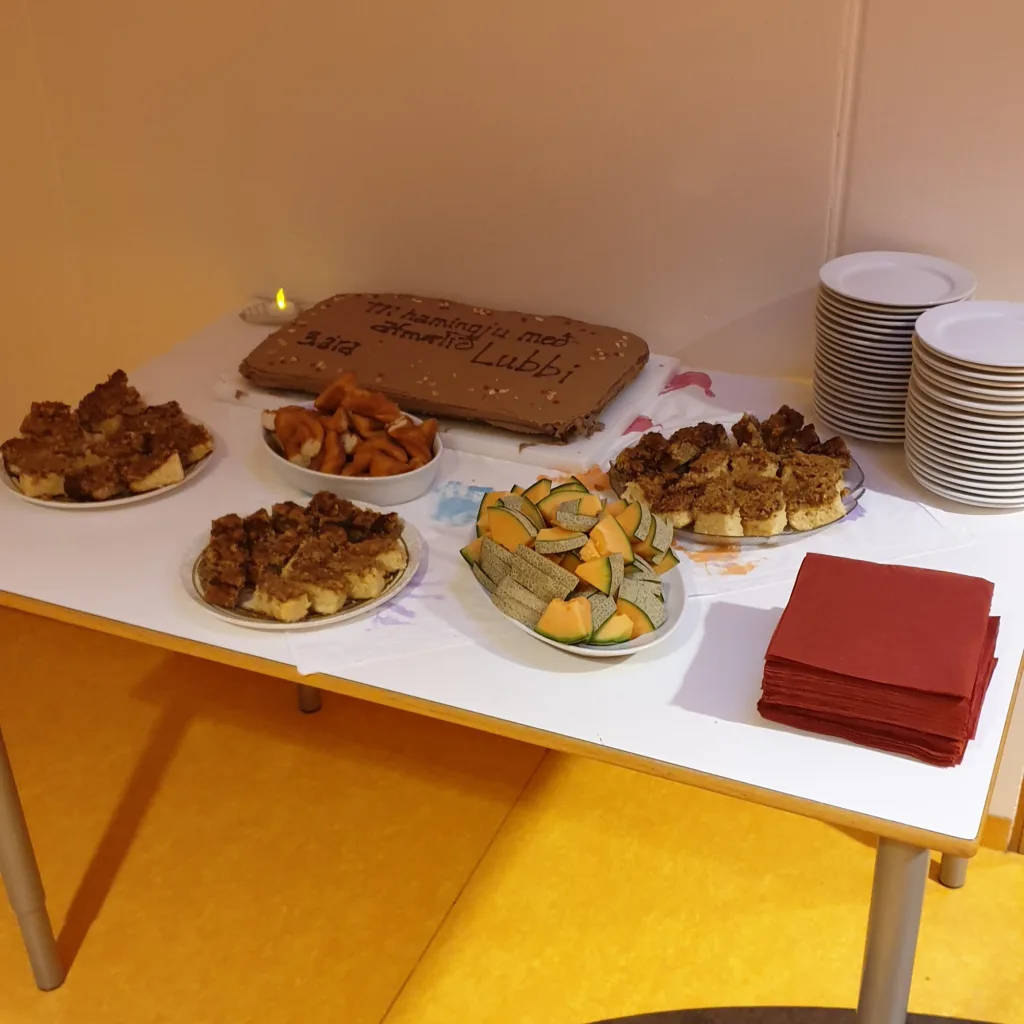 Lubbi varð þriggja ára og var haldið uppá það með söng og köku, og eins og alvöru afmælisbarni fékk Lubbi afmæliskórónu.