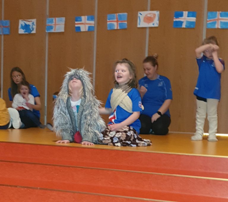 Einnig fara elstu árgangarnir að syngja fyrir eldri borgara í félagsmiðstöð þeirra sem er Glaðheimar.