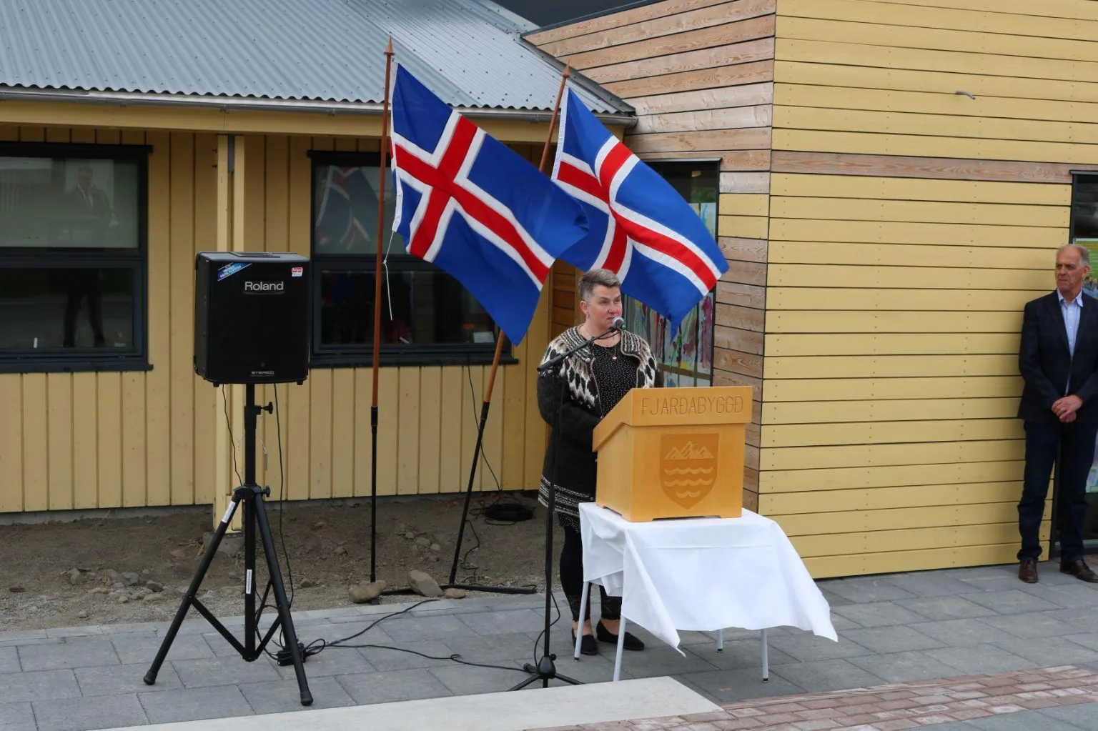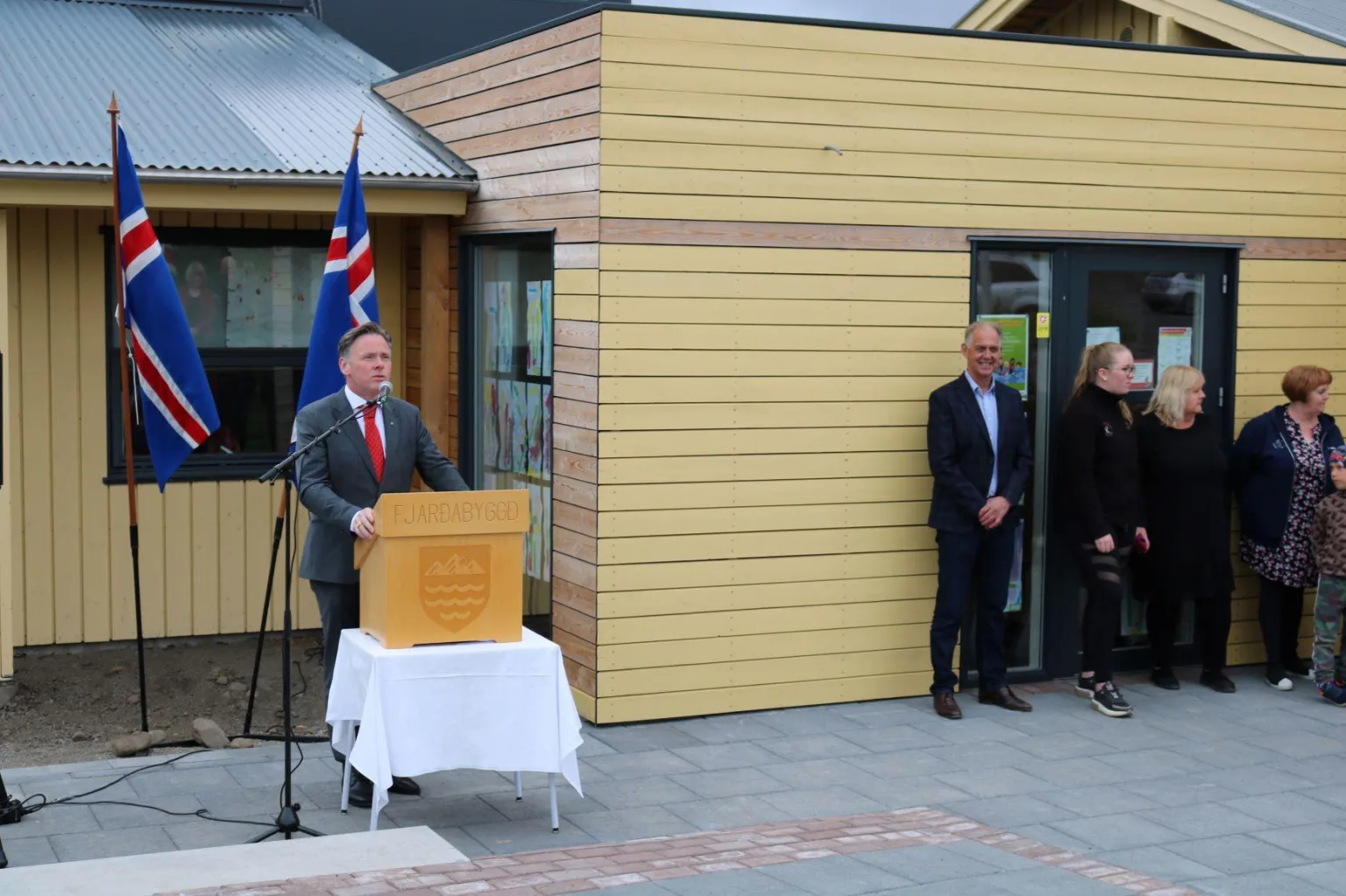 Guðni Th. Jóhannesson og eiginkona hans Eliza Reid voru viðstödd athöfnina í dag, og auk þeirra voru bæjarstjóri, fulltrúar úr bæjarstjórn Fjarðabyggðar, fræðslustjóri, bæjarritari viðstödd. Að sjálfsögðu voru börn og starfsmenn á Leikskólanum Lyngholti viðstödd og tóku virkan þátt í athöfninni.