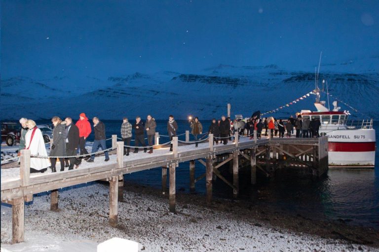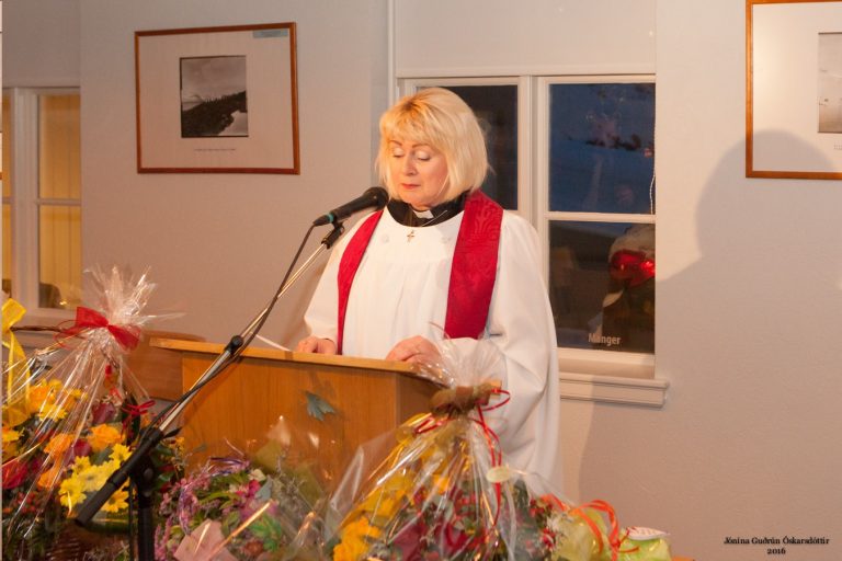 Móttökuathöfnin fór fram á veitingastaðnum l'Abri á Franska spítalanum og var þar fjöldi gesta samankominn af þessu ánægjulega tilefni. Athöfnin hófst á því að sr. Jóna Kristín Þorvaldsóttir, blessaði nýja bátinn, sem lá við frönsku bryggjuna sunnan við Franska spítalann.