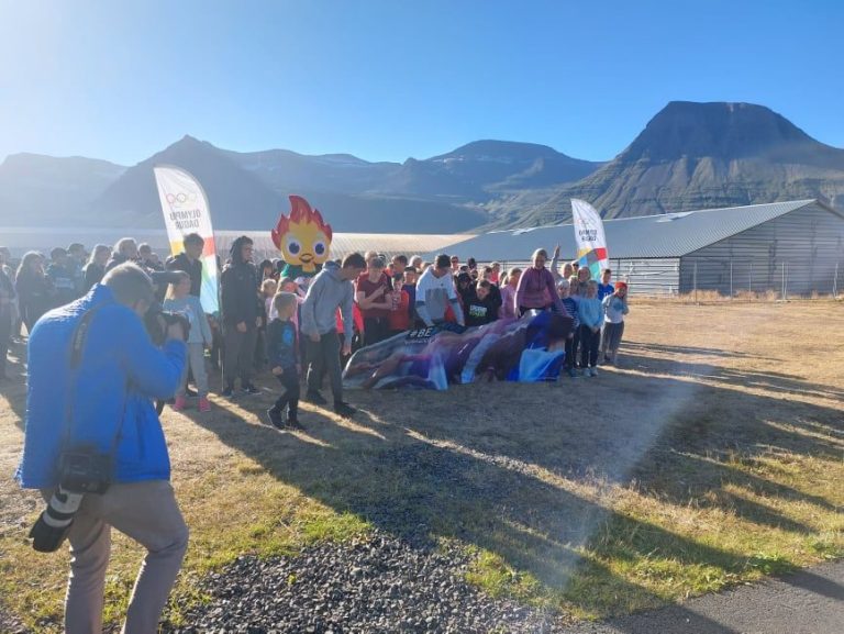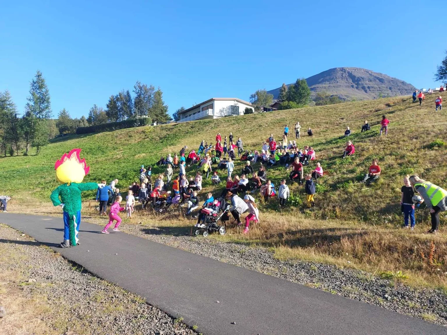 Lukkudýrið Blossi mætti austur í gær og setti hlaupið ásamt börnum úr Grunnskóla Reyðarfjarðar kl. 10:00, að lokinni góðri upphitun. Þrjár vegalengdir voru í boði, þar sem allir hefðu átt að finna vegalengd við sitt hæfi.