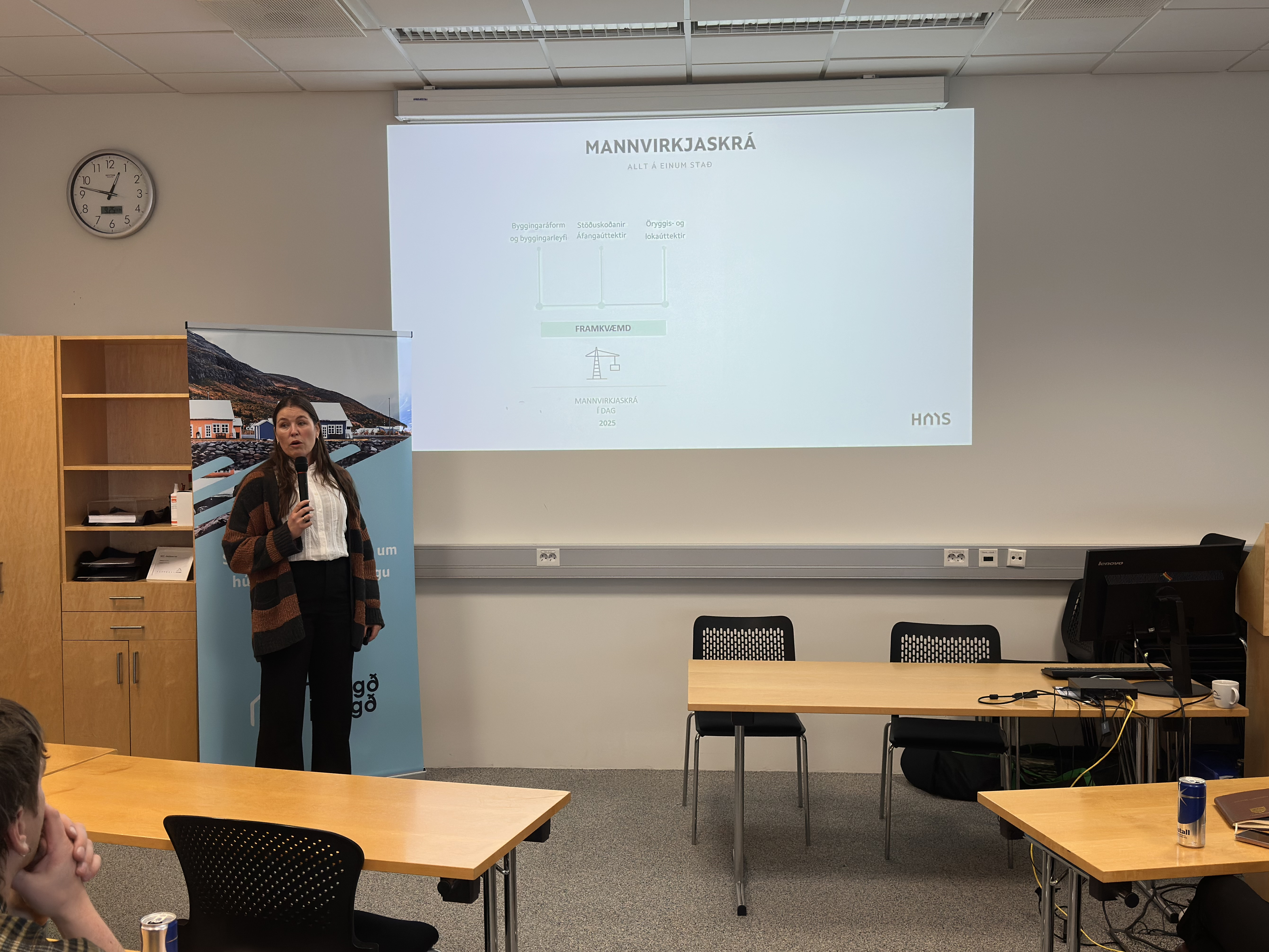 Jóna Árný Þórðardóttir, bæjarstjóri Fjarðabyggðar, hóf fundinn með yfirferð um stöðu húsnæðismála í sínu sveitarfélagi. Þá fór Jón Örn Gunnarsson, sérfræðingur húsnæðisáætlana hjá HMS, yfir stöðu íbúðauppbyggingar og húsnæðisáætlanir sveitarfélaga á Austurlandi og greindi helstu áskoranir og tækifæri í landshlutanum. Dagný Geirdal, verkefnastjóri Mannvirkjaskrár hjá HMS, kynnti að lokum innleiðingu stafrænnar stjórnsýslu í byggingarmálum, þar á meðal sameiginlegt umsóknarkerfi fyrir byggingarleyfi og ávinning þess fyrir sveitarfélög og íbúa.
