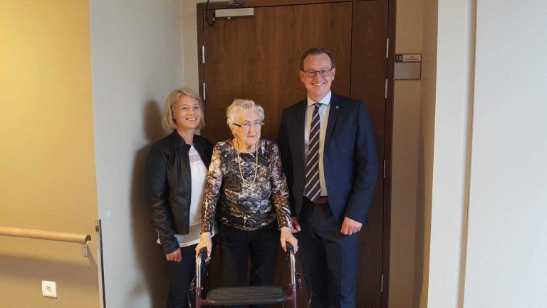 Anna Hallgrímsdóttir frá Helgustöðum í Helgustaðahrepp varð 100 ára þann 7. ágúst sl. Í tilefni af þessum tímamótum heimsóttu Páll Björgvin Guðmundsson bæjarstjóri og Helga Elísabet Beck Guðlaugsdóttir félagsmálastjóri Önnu á heimili hennar á Hulduhlíð á Eskifirði á dögunum.