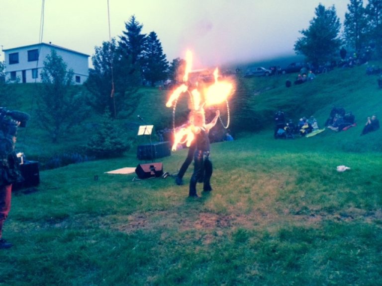 Franskir dagar voru settir í gær með glæsibrag. Á meðal þeirra sem komu fram voru eldgleypar frá Sirkus Íslands, sem léku listir sínar og segja má að hafi lýst upp hátíðarsvæðið í ljósaskiptunum.