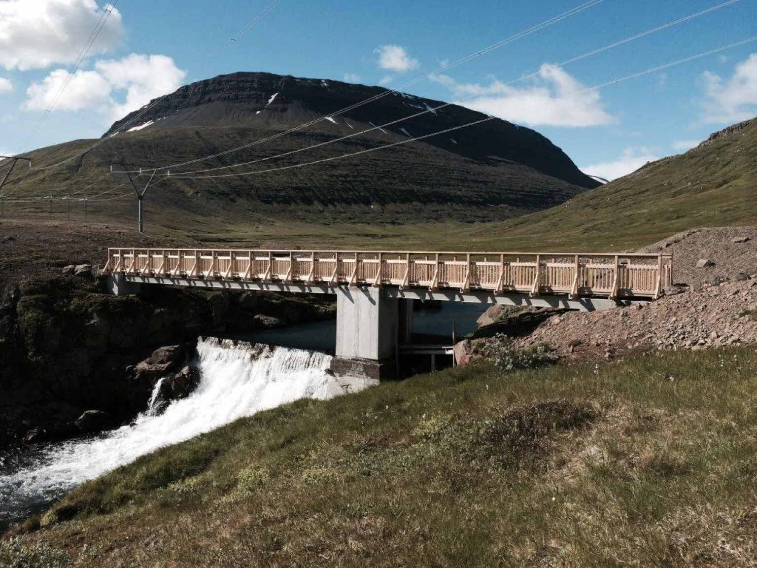 Brúin liggur yfir Búðarárstíflu og tengir saman þau frábæru göngu- og útvistarsvæði sem eru austan og vestan megin árinnar. Rafveitan hafði forgöngu um brúargerðina og naut til þess stuðnings Landsnets og Alcoa Fjarðaáls.