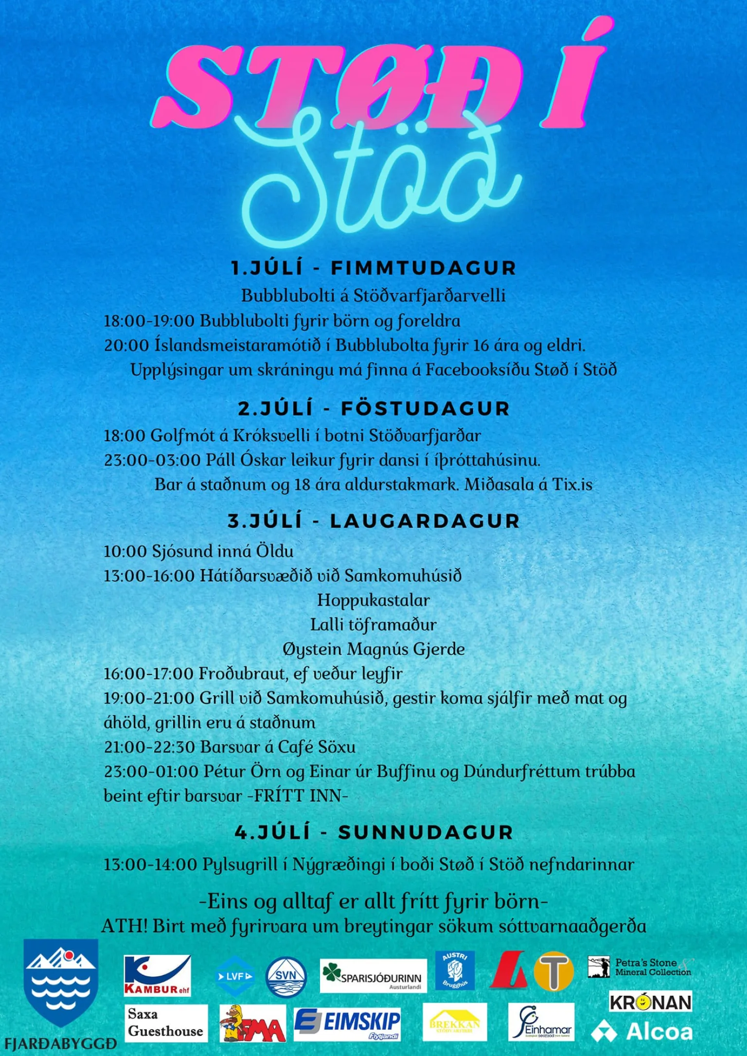 Má þar nefna ball með Páli Óskari í kvöld og á morgun mætir Lalli Töframaður á svæðið. Þá verða Pétur Jesú og Einar úr Buffinu einnig á staðnum og að sjálfsögðu verða hoppukastalar og froðubrautin ásamt ýmsum öðrum uppákomum.