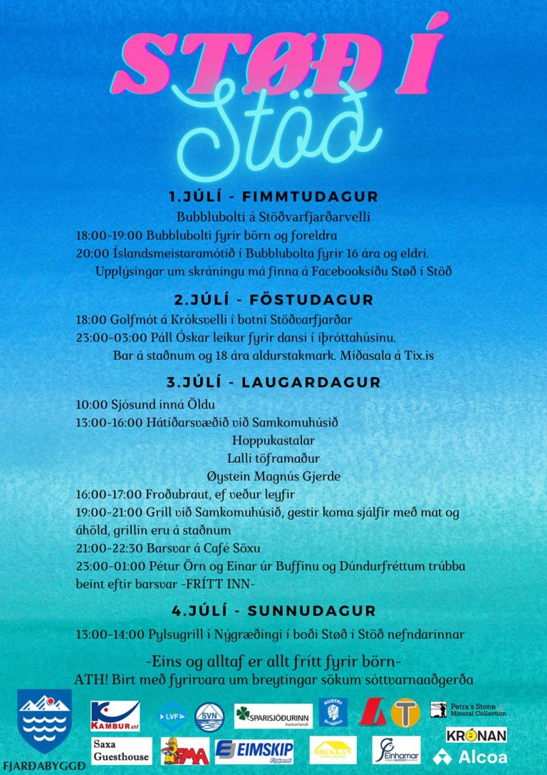 Dagskrá hátíðarinnar má finna hér að neðan og á Fésbókarsíðu Støð í Stöð sem má nálgast hér.
