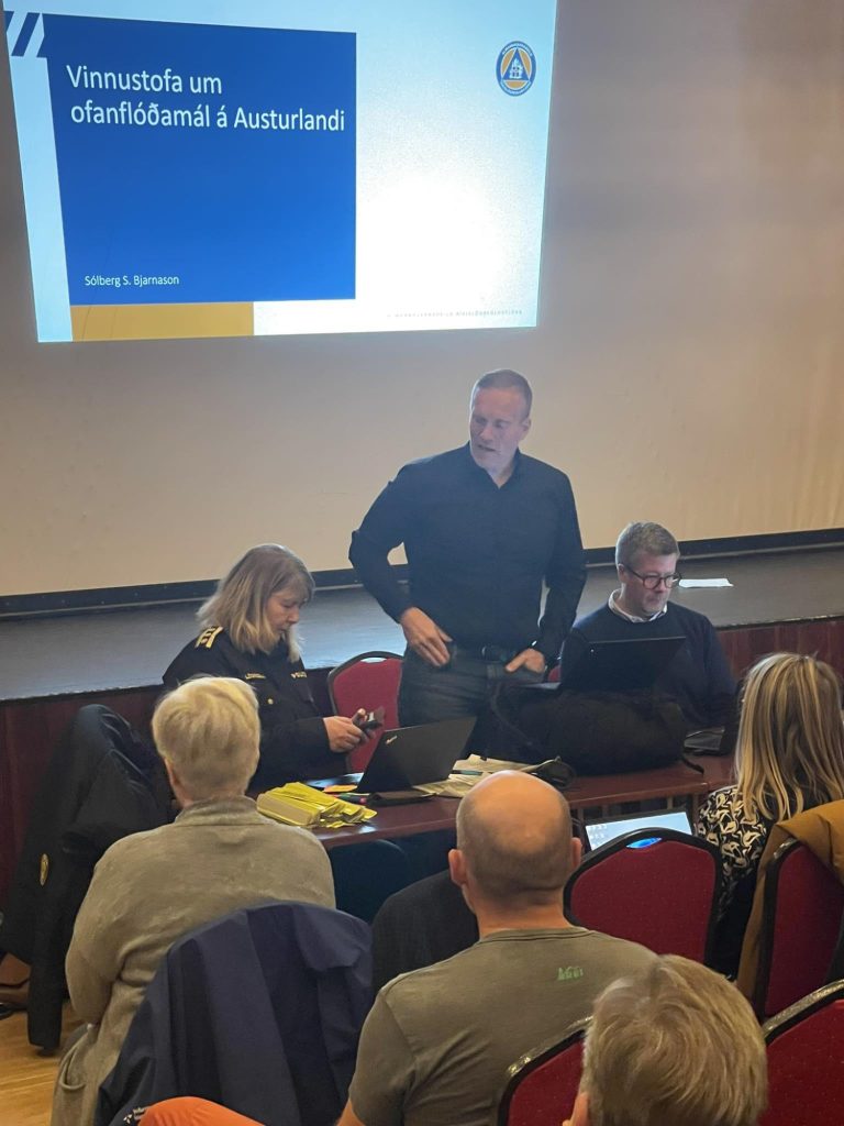 Margrét María Sigurðardóttir lögreglustjóri á Austurlandi bauð gesti velkomna og fór yfir helstu atriði á vettvangi Almannavarnarnefndar Austurlands. Því næst tók við Sólberg Svanur Bjarnason við og fór yfir helstu forgangsverkefni Almannavarnadeildar ríkislögreglustjóra er varðar ofanflóðamál á Austurlandi.
