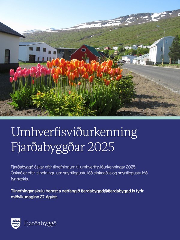 Fjarðabyggð óskar eftir tilnefningum til umhverfisviðurkenningar 2025. Óskað er eftir tilnefningu um snyrtilegustu lóð einkaaðila og snyrtilegustu lóð fyrirtækis.