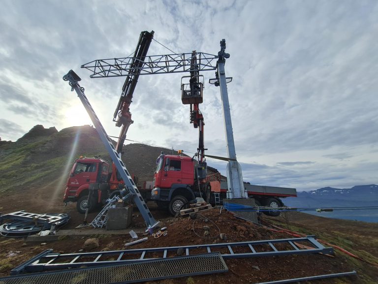 Unnið að viðgerð topplyftunar í Oddsskarði