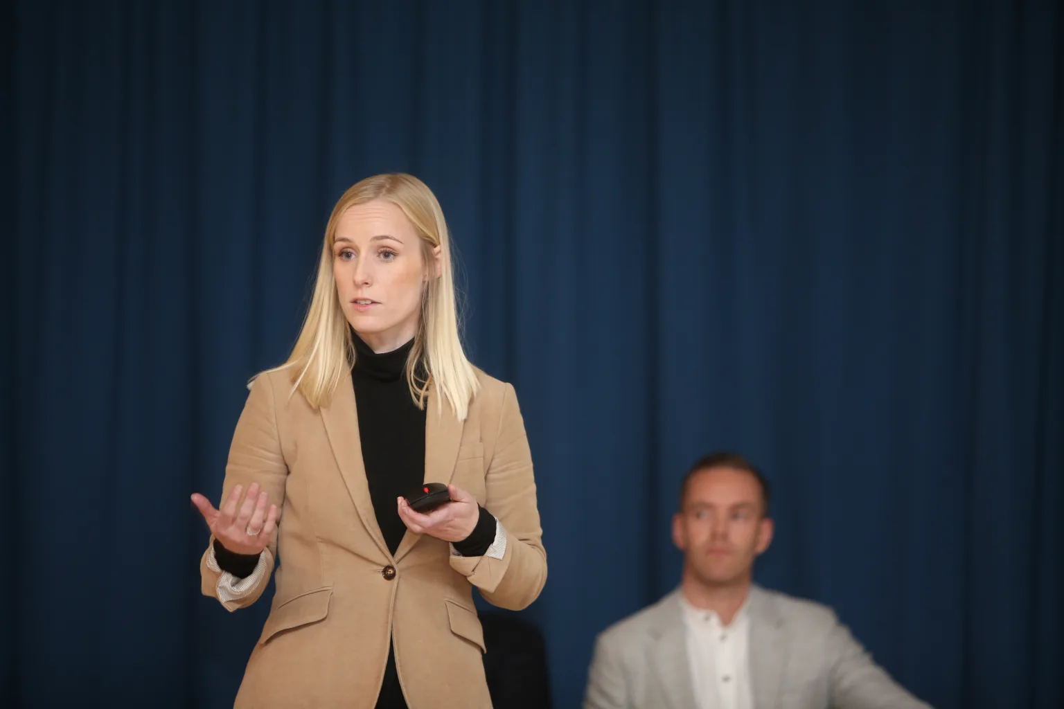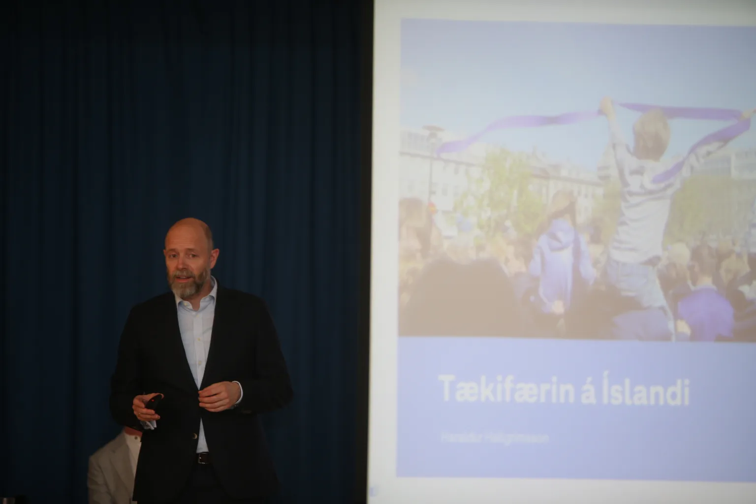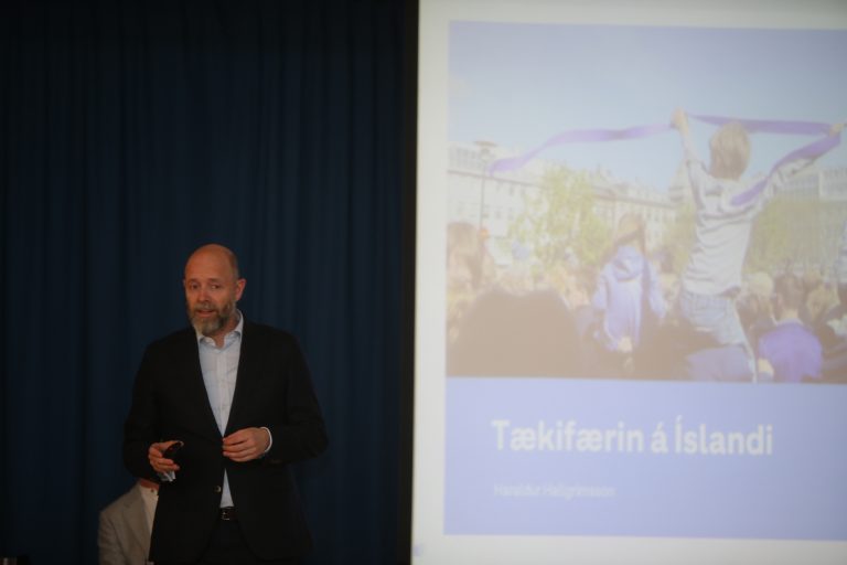 Þar á eftir fór Egill Tómasson, nýsköpunarstjóri hjá Landsvirkjun, yfir hvað rafeldsneyti er og hvernig það mun nýtast við þau orkuskipti sem framundan eru á Íslandi og í heiminum öllum. Að lokum fjallaði Haraldur Hallgrímsson, forstöðumaður viðskiptaþróunar hjá Landsvirkjun, í stuttu máli um þær hugmyndir sem uppi eru um verkefni tengt grænum orkugarði og framleiðslu rafeldsneytis á Reyðarfirði.