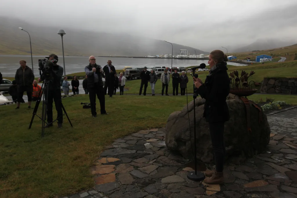 Að ræsingu lokini flutti Jón Björn Hákonarsson stutt ávarp fyrir hönd Fjarðabyggðar og Irena Fönn Clemmensen flutti tvö ljóð. Björt Ólafsdóttir flutti svo ávarp áður en gengið var upp fyrir minningarreitin þar sem Sigurður Rúnar Ragnarsson, sóknarprestur í Neskaupstað, blessaði mannvirkin.