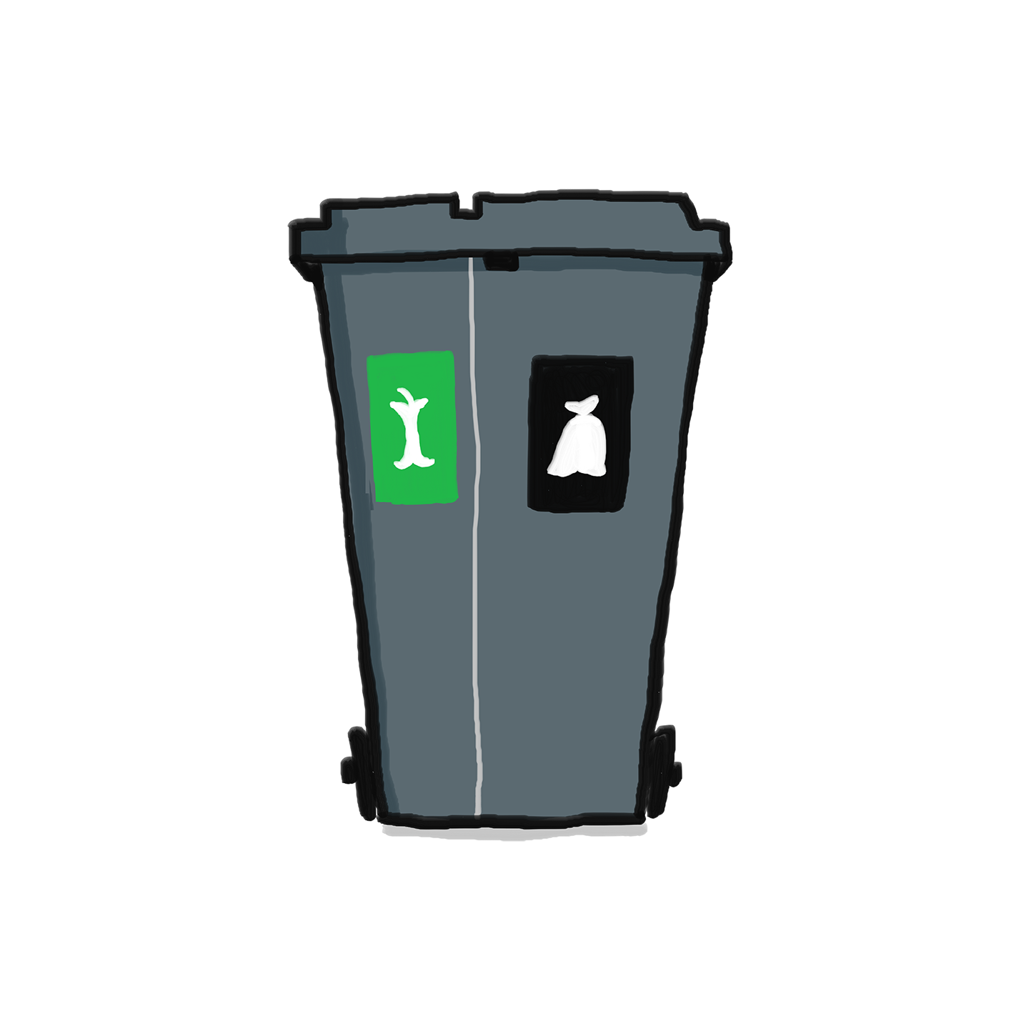 Ef tunnur hafa ekki verið merktar þá er græna tunnan fyrir pappír/pappa og gráa tunnan fyrir plast.
