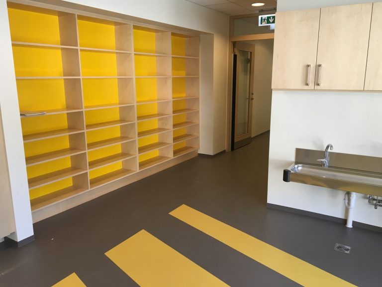 Sérstökum flekum hefur, sem dæmi, verið komið fyrir í rýmum og göngum byggingarinnar svo að hljóðvist hússins verði sem bærilegust og með sérstökum veggborðum, sem leggja má upp vegg, er leitast við að nýta sem best rými til bæði starfs og leiks. Framkvæmdir hafa gengið vel, þrátt fyrir heldur válynd veður á byggingartíma.