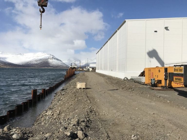 Verktakinn sem hlaut verkið var MVA á Egilsstöðum og er hann nú á fullu í framkvæmdunum sem felast í því að verið er að byggja bryggju framan við nýja frystigeymslu. Bryggjan er úr forsteyptum einingum sem komið er fyrir á stálstaurum.
