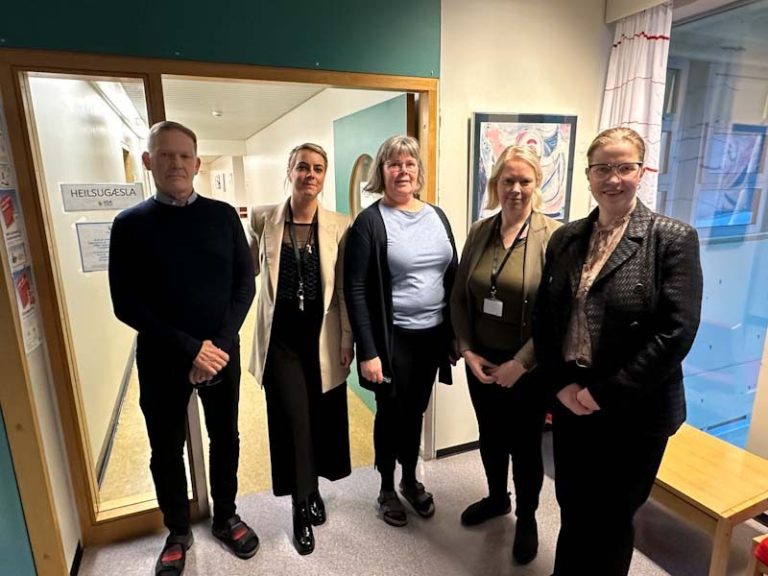 Að loknu góðu spjalli við þá Jóhann og Hrein, var haldið yfir til Heilbrigðisstofnunar Austurlands (HSA). Þar tóku á móti okkur Pétur Heimisson, framkvæmdarstjóri lækninga, Þórarna Gró Friðjónsdóttir, framkvæmdarstjóri mannauðs, Borghildur Fjóla Kristjánsdóttir, rekstrarstjóri HSA í Neskaupstað og Sigríður Kristinsdóttir, deildarstjóri sjúkrasviðs. Málefni heilbrigðisþjónustunnar voru rædd í þaula s.s. verkefnið að laða til Fjarðabyggðar hæft heilbrigðisstarfsfólk. Húsnæðismál eru ofarlega á baugi hjá starfsfólki HSA og nýlega var fest kaup á tveimur íbúðum í Neskaupstað til að auðvelda mönnun. Þá voru lýðheilsumarkmið stjórnvalda rædd og staða mælikvarðanna á Austurlandi, auk verkefnanna "Gott að eldast" og "Janusarverkefnið" sem margir þekkja. Gott samstarf á milli HSA og Fjarðabyggðar var rætt þegar snjóflóðin féllu síðastliðin vetur, áfalla-teymi sem sett var saman, hefur reynst vel og áframhald er á þeirri vinnu. Í gangi er könnun á vegum samráðhóps um áfallastuðning, tilgangurinn með þeirri könnun er að fylgja eftir þeim stuðningi sem veittur var strax í kjölfarið á snjóflóðunum, og kanna hvort á frekari stuðning sé þörf, nú þegar vetur skellur á. Hægt er að nálgast könnunina hér.