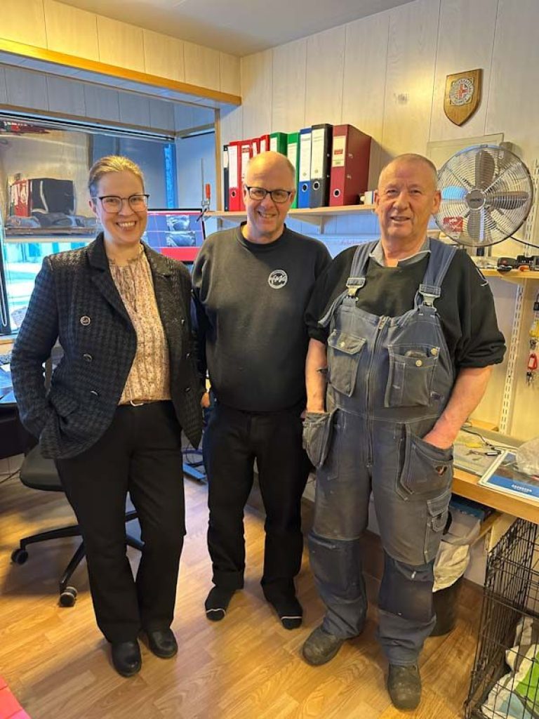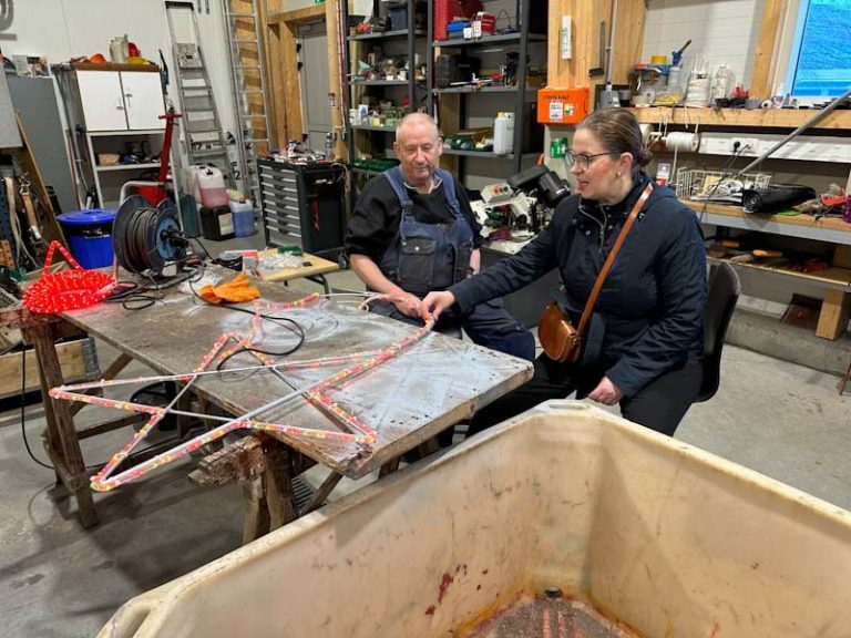 Eftir heimsóknina á Eyravelli, var haldið yfir í þjónustumiðstöðina en þar tók á móti okkur Guðni Geirsson, starfsmaður þjónustumiðstöðvar og Ari Sigursteinsson, bæjarverkstjóri. Nú er jólaundirbúningurinn í fullum gangi og var verið að yfirfara jólaskreytingar sem er verið að setja upp þessa dagana. Yfir 250 jólaskreytingar verða settar upp á ljósastaurana í Fjarðabyggð í ár og á hverju ári þarf að endurnýja og lagfæra hluta af skreytingunum og voru smíðaðar 25 nýjar jólastjörnur í ár í því skyni. Eins er verið að setja upp jólatré í hverjum kjarna sem svo eru skreytt jólaljósum, en jólaljósin verða tendruð dagana 2. – 6. desember. Hægt er að sjá dagskránna hér.