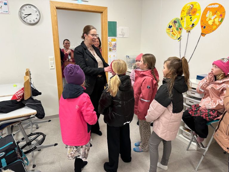 Heimsóknin byrjaði í Nesskóla en þar tók á móti bæjarstjóra Þórfríður Soffía Þórarinsdóttir, aðstoðarskólastjóri Nesskóla. Heimsóknin hófst á samverustund með öðrum bekk þar sem börnin buðu bæjarstjórann sem og foreldra sína velkomin á sal og fluttu fyrir hópinn flotta sýningu undir stjórn kennara síns Guðrúnar Smáradóttur. Í sýninguna nýttu þau efnivið úr náminu eins og t.d. samheiti og andheiti og luku síðan samverustundinni með skemmtilegum dansi. Að lokinni samverustund fór Þórfríður með hópinn um skólann og var kíkt inn í kennslustundir hjá bæði eldri og yngri bekkjum og spjallað við nemendur. Eldri bekkirnir voru í svokallaðri samþættingu og voru að reikna út kostnað við að kaupa og reka bíl. Heyra var á nemendum að þeim hlakkaði til að fá bílprófið og greinilega tímabært að fara velta fyrir sér þessum málum. Fimmti bekkur var á fullu í tónsmíði og leyfðu bæjarstjóra að hlýða á verk sem þau höfðu samið í kennslustundinni. Óhætt er að segja að framtíðin er björt miðað við það sem við fengum að heyra frá nemendunum. Þá voru nemendur úr fjórða bekk í heimilisfræði að baka piparkökur þannig að jólailmur var kominn um allan skóla. Í lokin var sest niður með starfsfólki skólans, og fjölmörg málefni rædd. Eins og í fyrri heimsóknum sköpuðust góðar umræður sem snúa að mörgum samfélagslegum málefnum. Eftir heimsóknina í Nesskóla var haldið yfir í leikskólann Eyravelli og tók þar á móti okkur Sigurlaug Björk Birgisdóttir, leikskólastjóri. Gekk hún með okkur um leikskólann og fengum við innsýn inn í það starf sem fer þar fram. Í leikskólanum eru átta deildir og eru deildirnar nefndar eftir ævintýrum Astrid Lindgren. Um 80 börn frá eins árs aldri til sex ára eru í leikskólanum og um 30 starfsmenn. Þegar við komum var verið að undirbúa hádegisverð og fengum við innsýn inn í undirbúning á hádegisverð fyrir um 100 manns hjá þeim Guðnýju Þorfinnsdóttur, yfirmatráði og Filsan Wais Joensen, aðstoðarmatráði. Í matinn var steiktur fiskur í raspi sem okkur skildist að rynni yfirleitt mjög ljúflega ofan í litla maga. Á leikskólanum starfa þrír mastersnemar í leikskólafræðum, en þeir hafa búið til námsefnið ,,Töfrar Tónlistarinnar" og er það hluti af mastersverkefni þeirra. Markmiðið með kennsluefninu er að leggja áherslu á að efla málþroska, hreyfiþroska og sköpunarkraft barna í gegnum tónlist.