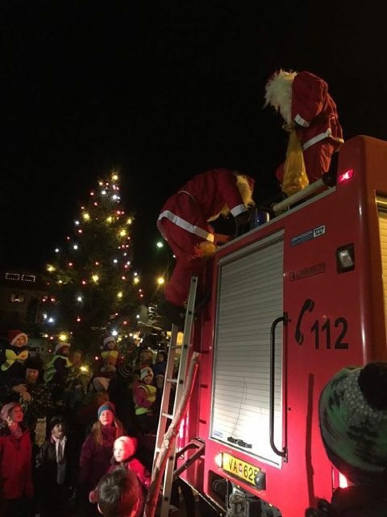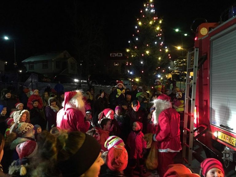 Jólasveinar voru auk þess á ferð á Reyðarfirði í dag, í tilefni af því að kveikt var á jólatrénu. Þá voru þeir á Fáskrúðsfirði og Stöðvarfirði í gær og vöktu að vanda mikla lukku.