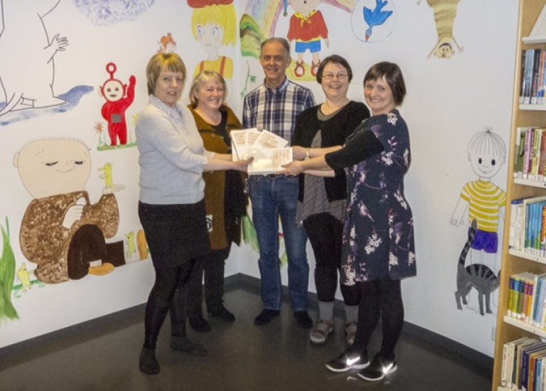 Sigrún Ragnarsdóttir starfsmaður Krabbameinsfélags Austfjarða afhenti í dag fyrstu bækurnar í bókasafninu á Reyðarfirði, með ósk um að þær myndu koma Austfirðingum að góðu gagni.