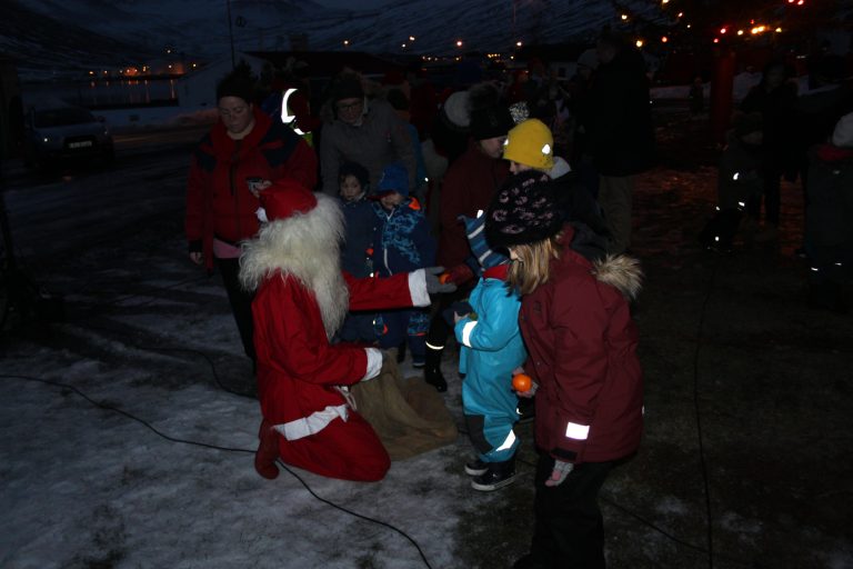 Talsverður fjöldi var saman kominn á öllum stöðum í blíðskaparveðri. Jólasveinarnir létu sjá sig og færðu börnunum ávexti.