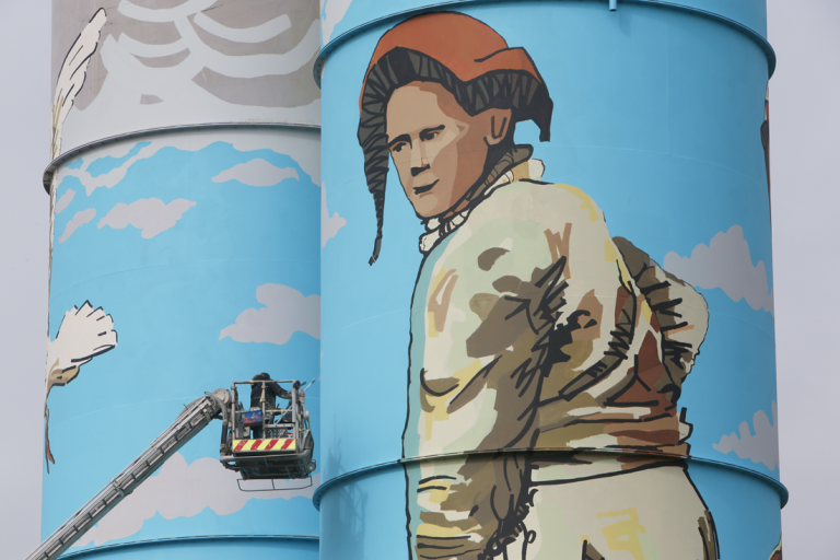 Lokið við gerð listaverks á sementstankana á Reyðarfirði – Austurfrétt