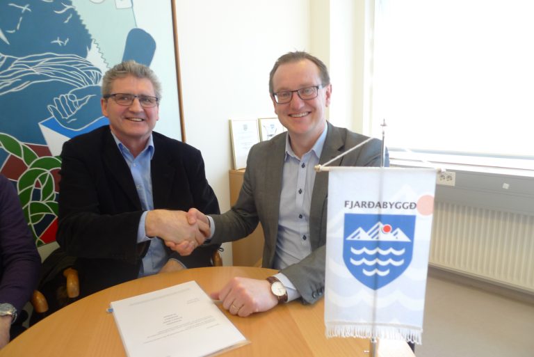 Fjarðabyggð og Orkufjarskipti hf. hafa með sér samstarf um lagningu ljósleiðarastrengs um Suðurfirði, nánar tiltekið frá Stöð í Stöðvarfirði yfir að Stuðlum í Reyðarfirði. Samningur var undirritaður af Bjarna M Jónssyni framkvæmdastjóra Orkufjarskipta hf og Páli Björgvini Guðmundssyni bæjarstjóra síðastliðin föstudag. Lagning ljósleiðarastrengs til að tengja dreifbýlisstaði á leiðinni er hluti af verkefninu Ísland ljóstengt sem styrkt er af Fjarskiptasjóði. Samstarf aðila gagnast báðum þar sem Orkufjarskipti hf. vinna að hringtengingu raforkuvirkja og aflstöðva á landsvísu sem nefnd er áttan. Með samstarfinu er kostnaði verkefnisins skipt milli aðila sem gerir það kleift að ljúka ljósleiðaravæðingu hluta dreifbýlisins á árinu 2017. Í þessum áfanga næst að tengja 14 staði sem falla undir skilyrði fyrir styrkveitingu Fjarskiptasjóðs en öðrum aðilum býðst að tengjast á kostnaðarverði heimtaugar. Fjarðabyggð áformar frekari ljósleiðaravæðingu á næstu árum ef tækifæri gefast til samstarfs um jarðlagnavinnu og styrkveitingar leyfa. Samstarf við Orkufjarskipti er mikið fagnaðarefni þar sem þekking og reynsla þeirra nýtist við lagningu strengsins en framkvæmdin er á þeirra höndum.