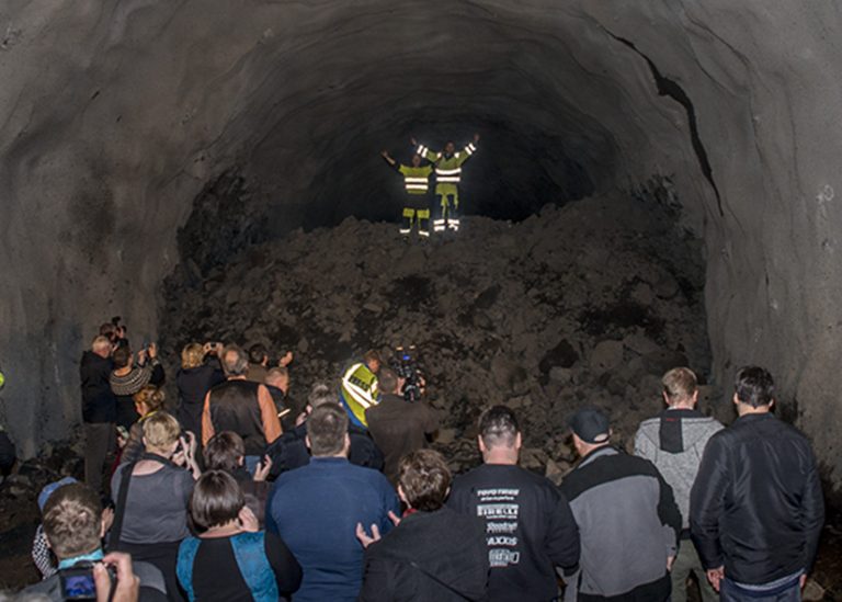 Í tilefni dagsins bauð verktakinn Suðurverk - Metrostav til móttöku í göngunum miðjunum, þar á meðal starfsmönnum gangagerðarinnar og fulltrúum sveitarfélagsins.