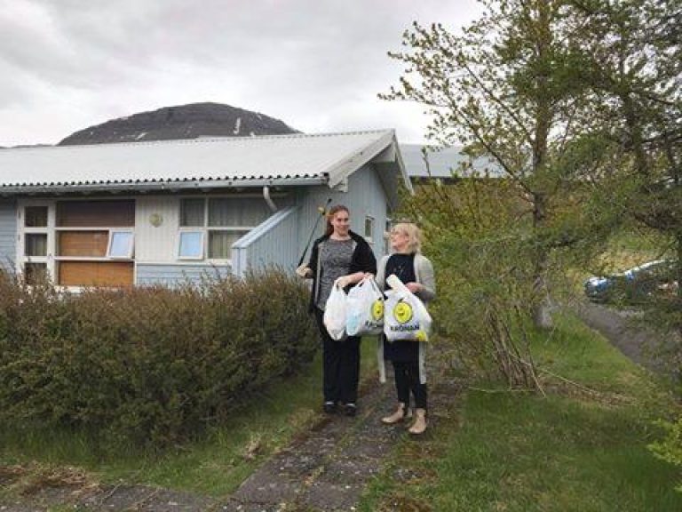 Kristín Ella, forstöðumaður, og Kristín Anna, starfsmaður búsetuþjónustunnar lögðu sitt af mörkum og gerðu reyðfirskt umhverfi snyrtilegra. Eins og sjá má á myndinni með fréttinni gekk verkið vel.